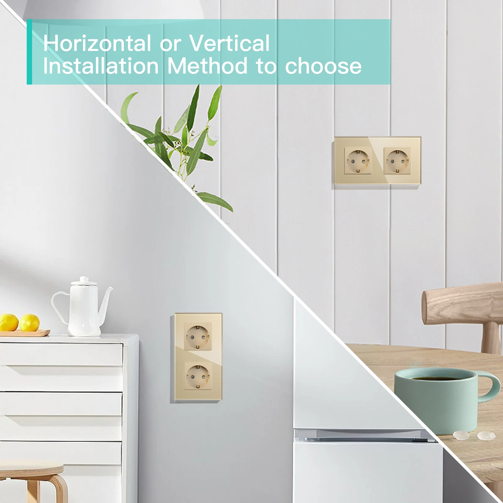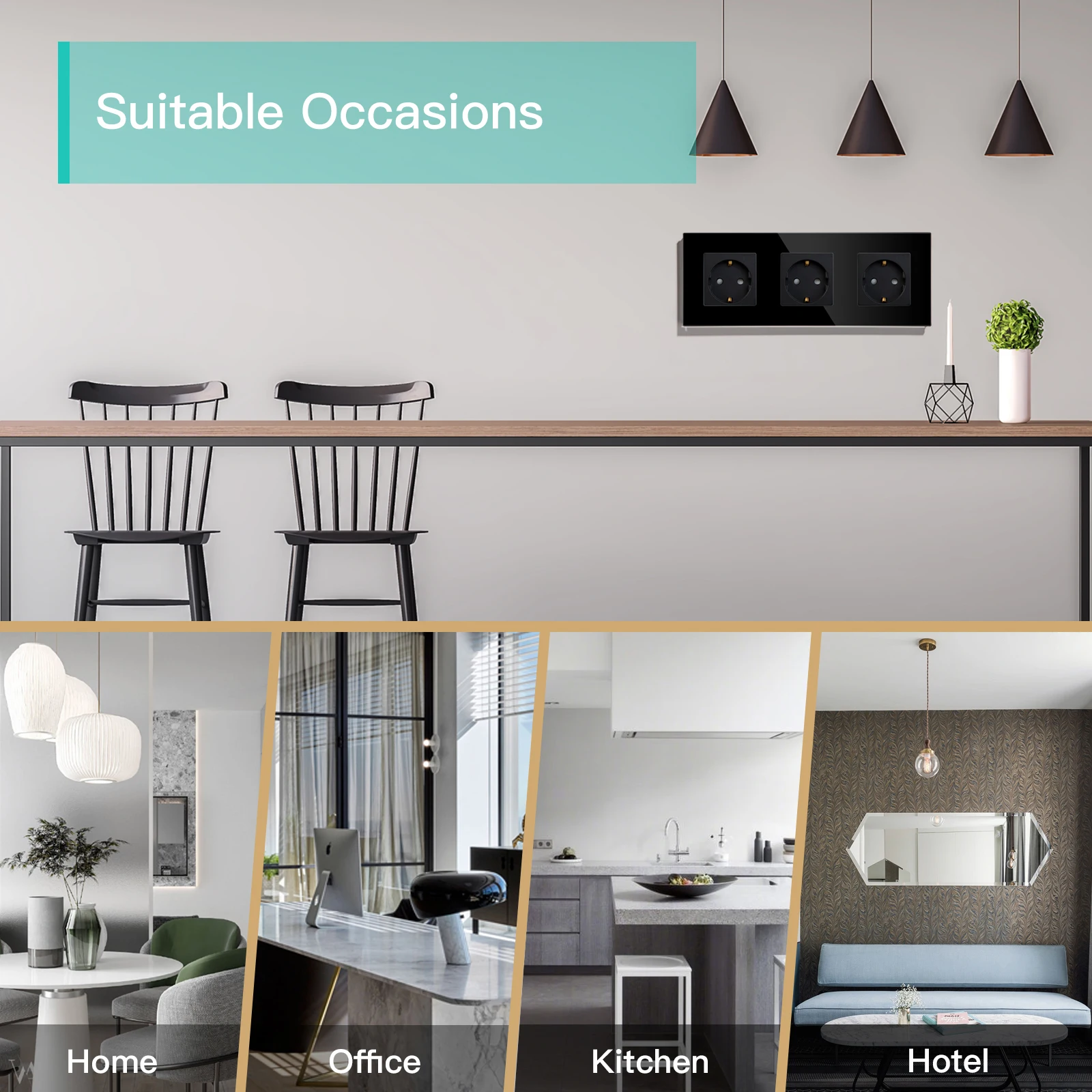 BSEED ซ็อกเก็ต EU เดี่ยวปลั๊กไฟคู่ซ็อกเก็ตไฟฟ้าสามช่องซ็อกเก็ตผนังแก้วคริสตัลสีขาวสีดําทองสีเทา 16A