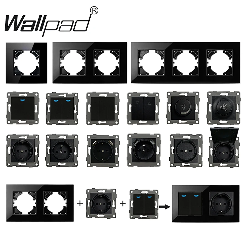 Novski ปลั๊กไฟฝรั่งเศสมาตรฐานยุโรป 2/3/4/5 แผงกระจกเต้าเสียบกลุ่ม 16A สีขาวสีเทาสีดํา