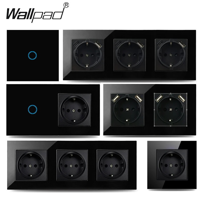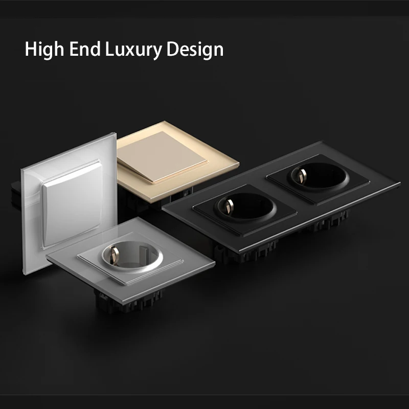 แก้วสีดํา Euro Wall ปลั๊กไฟ 16A 220V กลับ EU เยอรมันรัสเซียมาตรฐานสําหรับ Home Improvement