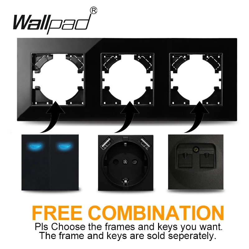 Bseed แผงคริสตัลติดผนังมาตรฐาน EU แผงสวิทช์กระจกพร้อมแผ่นโลหะ86/157/228/299มม. สีขาวสีดำสีทอง