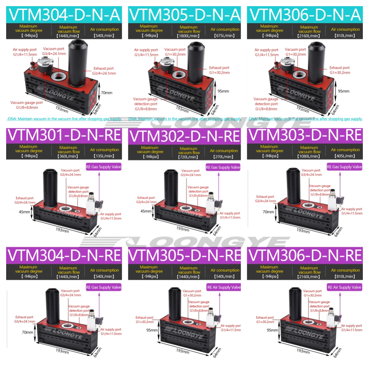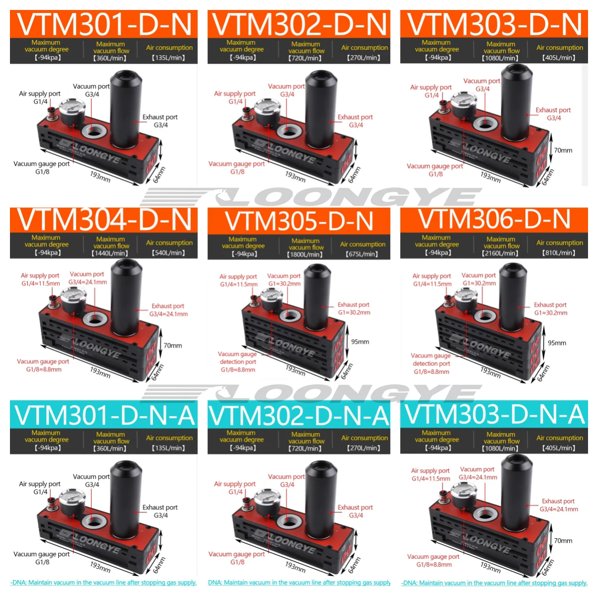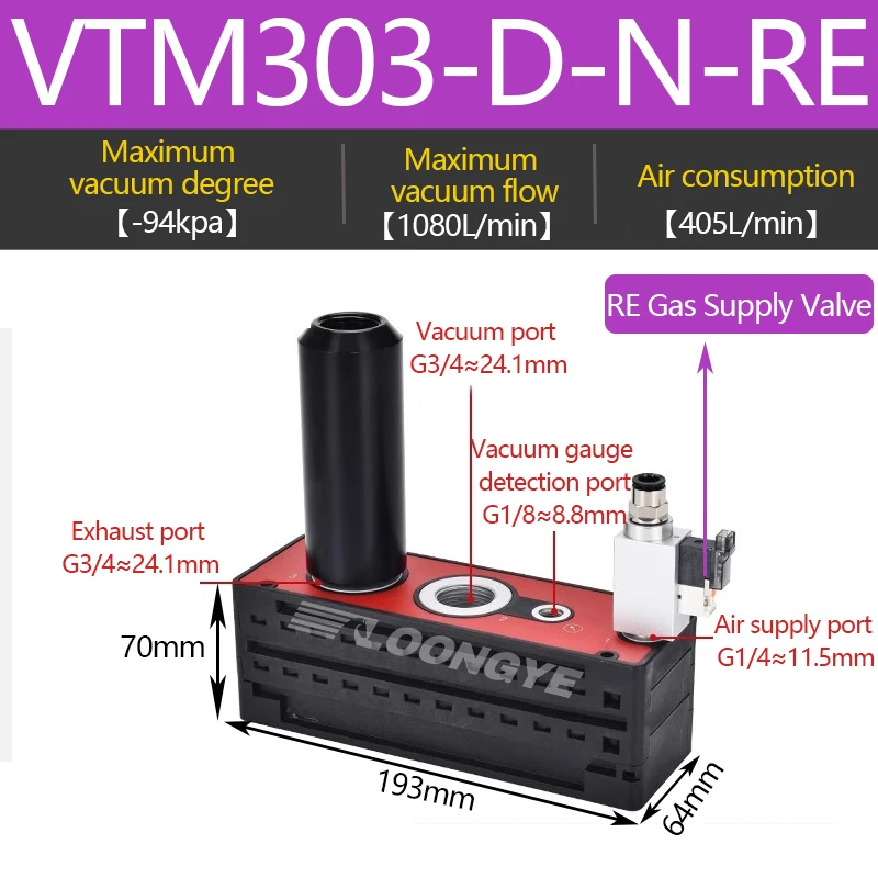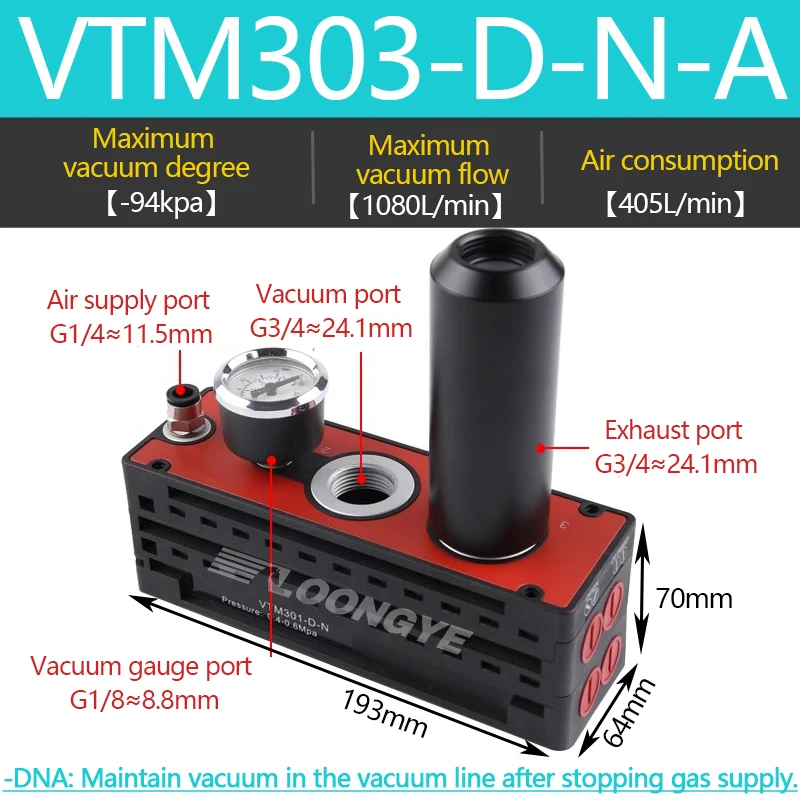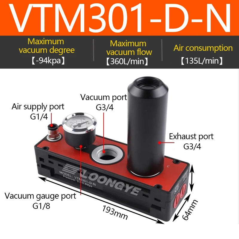 LOONGYE VTM Multistage เครื่องกําเนิดไฟฟ้าสูญญากาศ VTM301-DN ขนาดใหญ่กระแสเงินสดดูด AM AMC นลบความดันแผ่นสูญญากาศปั๊ม VTS นิวเมติก จาก 1 รีวิว