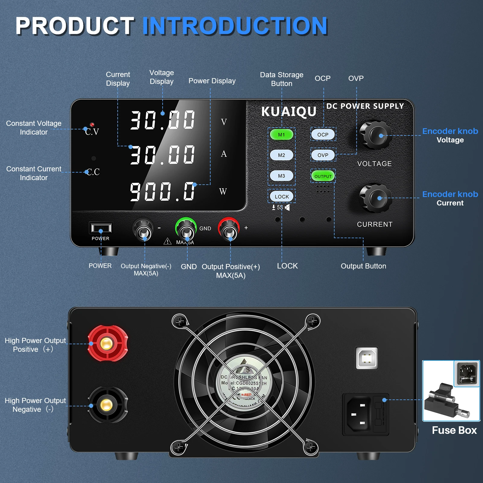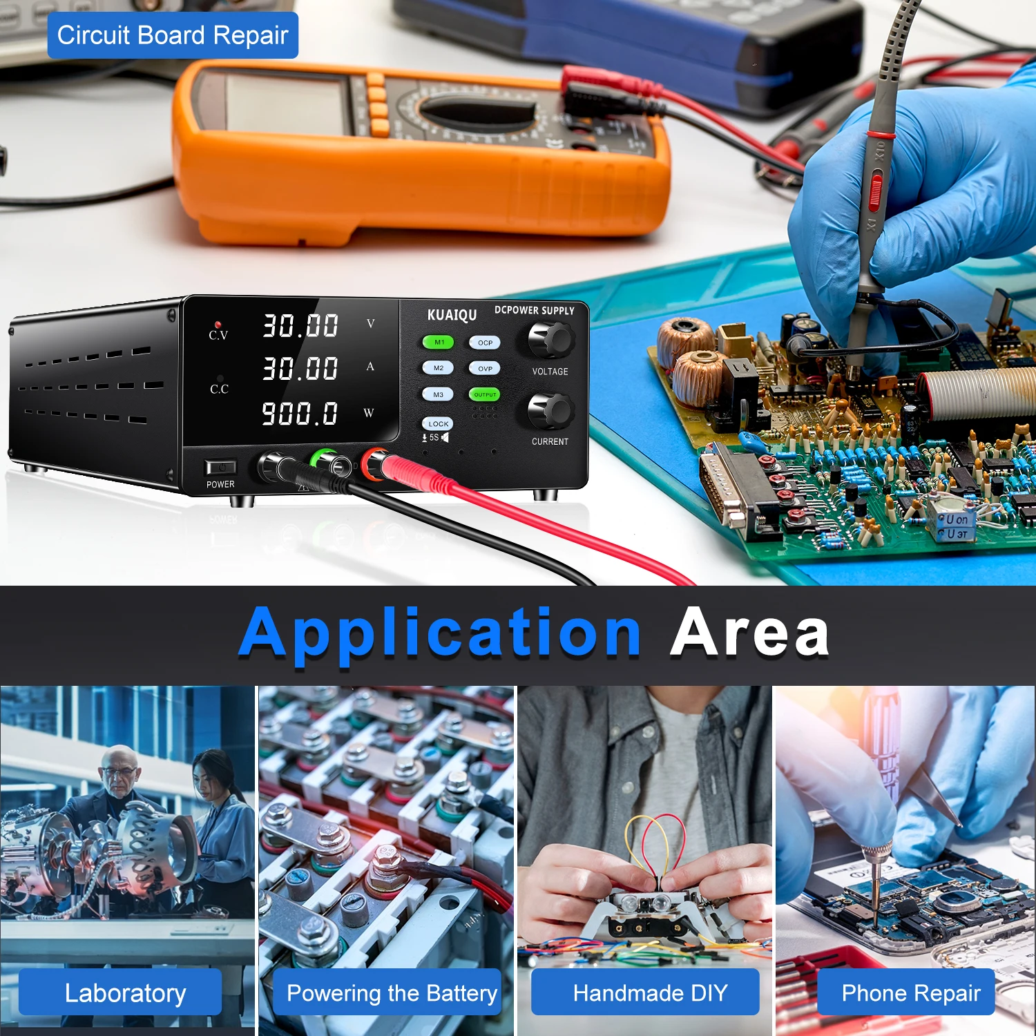 KUAIQU 0-3000W DC 300V 200V 100A 60A 50A Lab Bench แหล่งจ่ายไฟ Overcurrent ป้องกันนาฬิกาปลุก OVP OCP