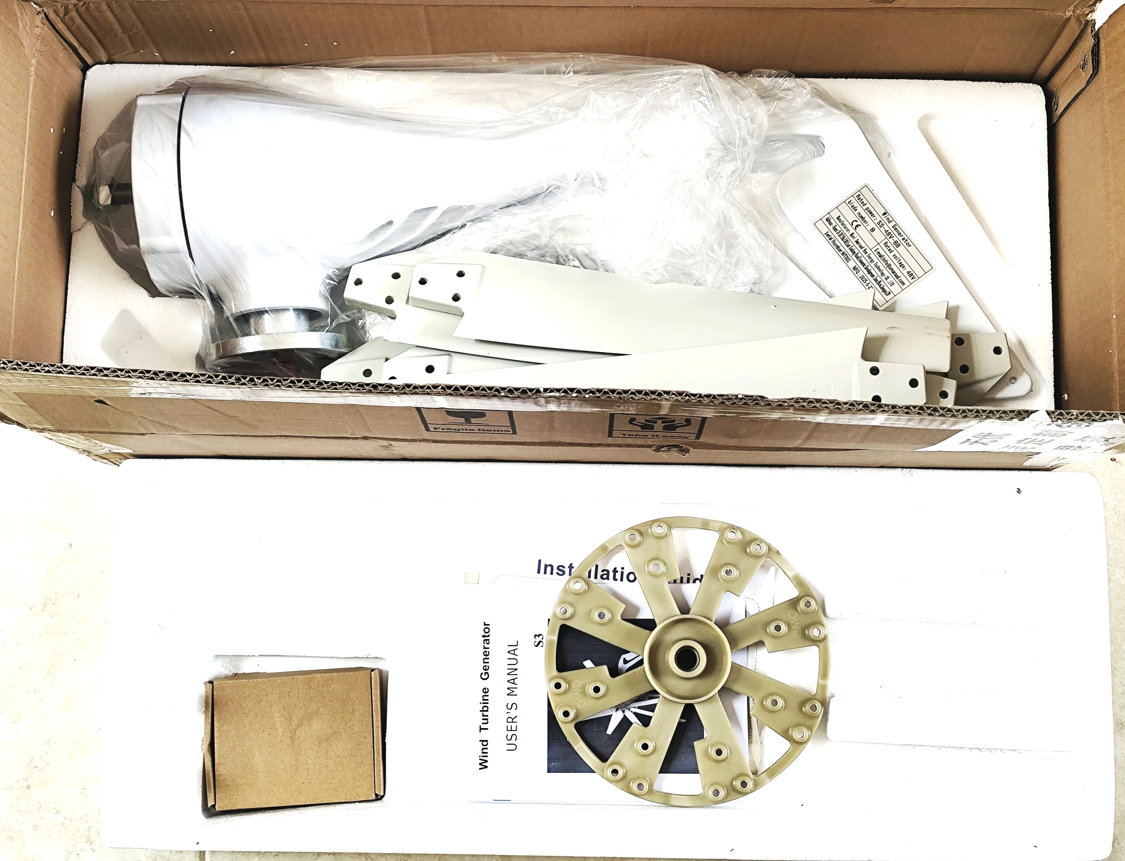 น่าเสียดายที่ผลิตภัณฑ์ทิ้งสิ่งที่ต้องการไว้ภายในข้อกําหนด ผู้ซื้อจะไม่ทราบแน่ชัดว่าพวกเขาได้รับอะไรและซื้ออะไรไปบ้าง เพียงแต่ว่าไม่มีที่ใดบนกังหันหรือในคู่มือฉบับที่ 1 ที่ให้ข้อมูลทางเทคนิคที่ผู้ซื้อจําเป็นต้องรู้ เช่น พลังของกังหัน เป็นต้น อย่างไรก็ตาม ในกรณีนี้ เราต้องหวังว่าผู้ขายจะส่ง/ส่งมอบสิ่งที่ฉันซื้อจริงๆ ซึ่งก็คือกังหันลมขนาด 6000Wh ดังนั้นฉันจะรู้ก็ต่อเมื่อฉันติดตั้งและเห็นว่ามันใช้งานได้เท่านั้น!