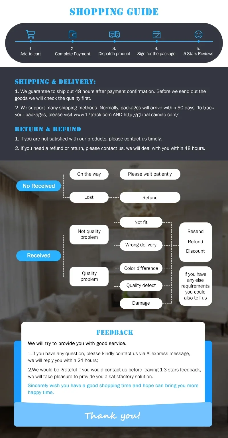 หากท่านไม่พอใจกับสินค้าไม่ว่าด้วยเหตุผลใดก็ตาม เราขอเชิญท่านตรวจสอบนโยบายการคืนเงินและการคืนสินค้าของเรา