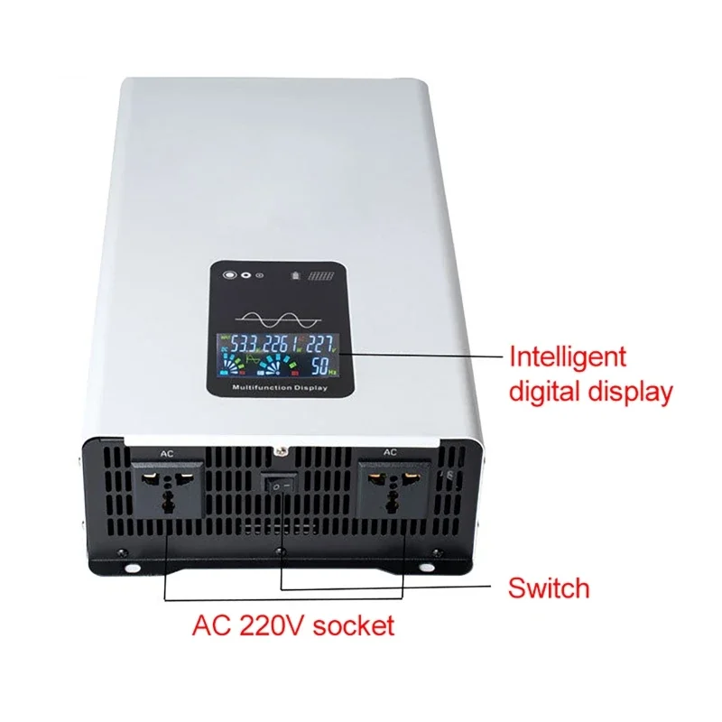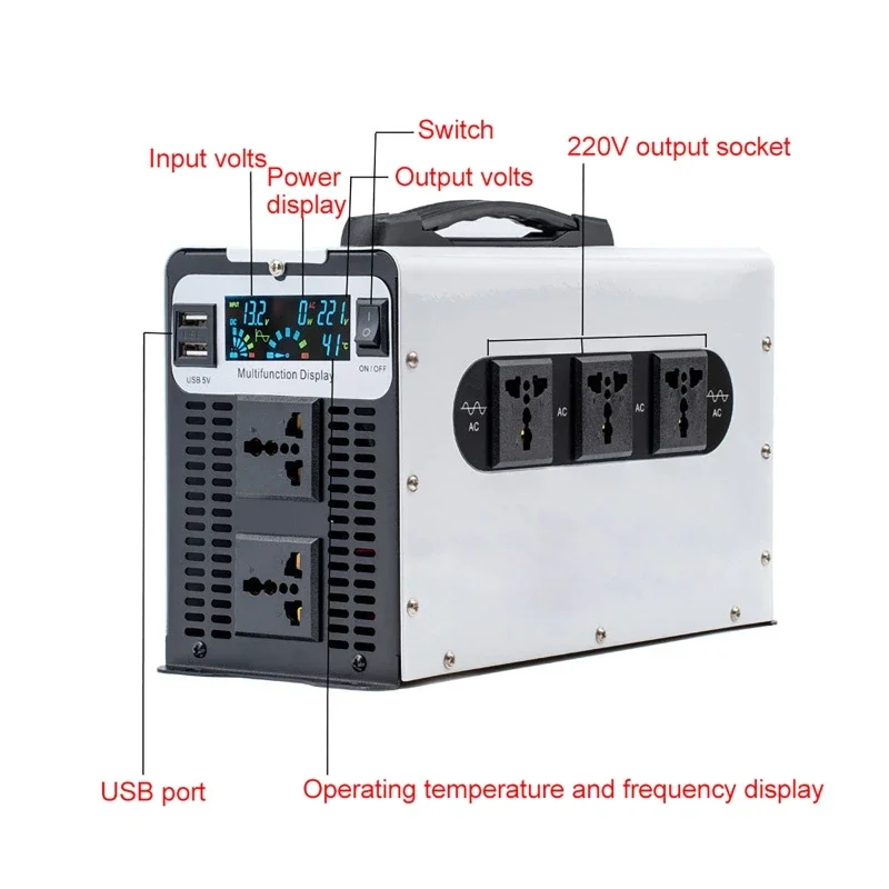 [คลื่นไซน์ที่พัฒนาขึ้น] แปลงไฟบ้าน 12V DC เป็น AC 220V พร้อมกำลังขับต่อเนื่อง 2500W (รองรับกระแสไฟกระชากสูงสุด 5000W) มาพร้อมกับช่องเสียบไฟ AC 1 ช่อง, หน้าจอแสดงแรงดันไฟฟ้าแบบ LCD, ขั้วต่อไฟฟ้า AC, ขั้วบวก และขั้วลบ(โปรดตรวจสอบให้แน่ใจว่ากำลังไฟรวมของอุปกรณ์ที่เชื่อมต่อคือ ≤ 2500W)