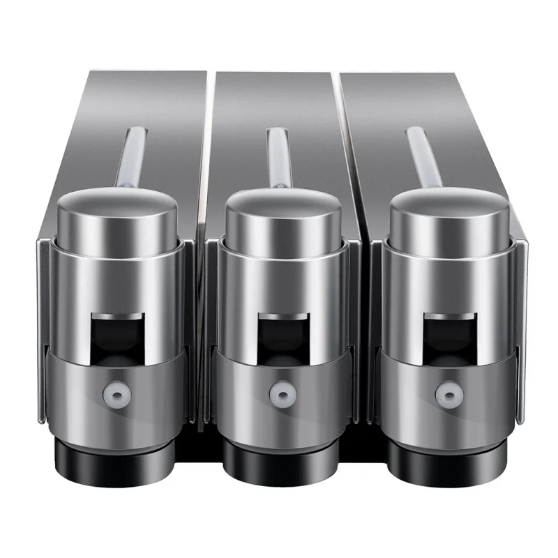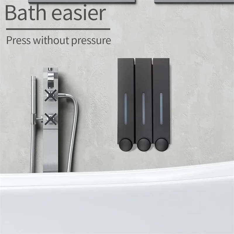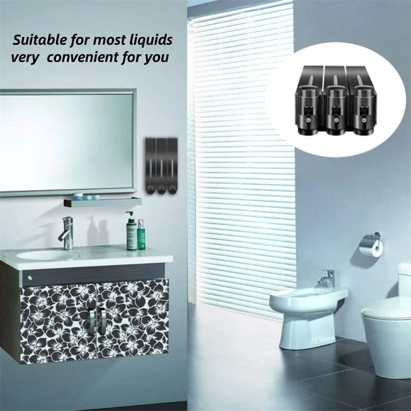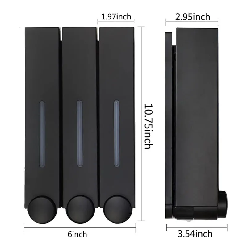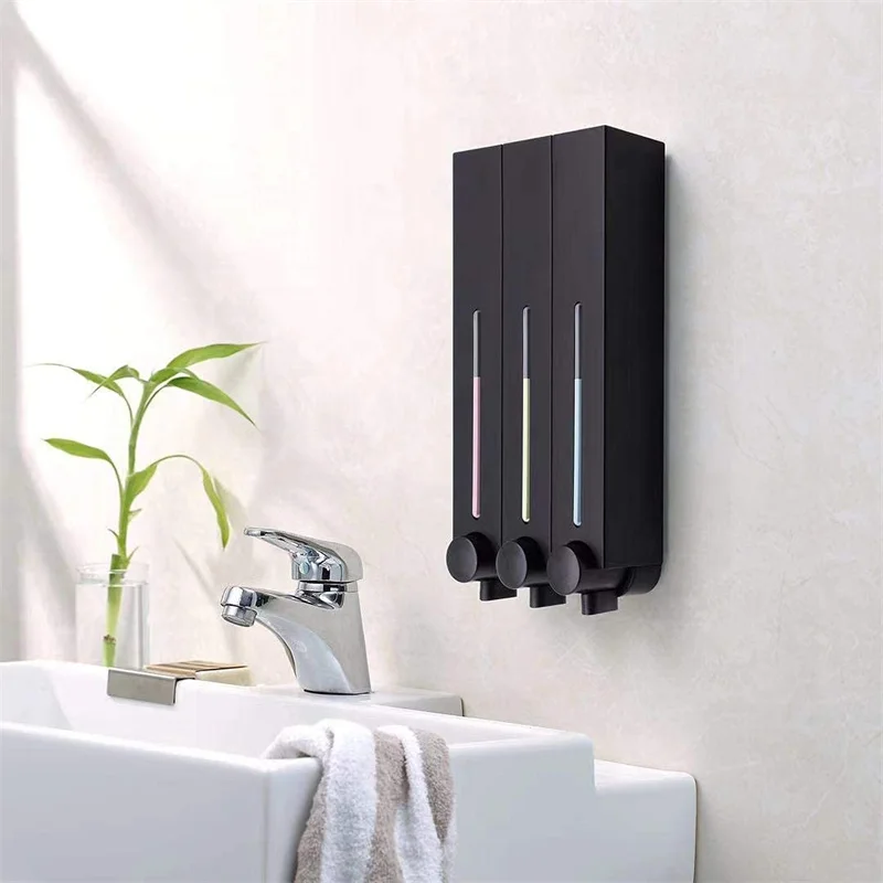 พลาสติก ABS เป็นมิตรกับสิ่งแวดล้อม: เครื่องจ่ายสบู่ในห้องน้ําติดผนัง 3 ช่องมีความทนทานและทนทานทนความร้อน ไม่เสียรูปง่าย ไม่มีแบคทีเรีย ป้องกันการกัดกร่อน มีสุขภาพดีและถูกสุขลักษณะ