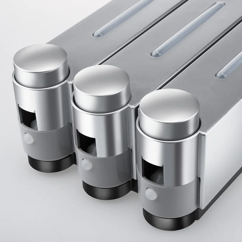 ความสะดวกสบายด้วยปุ่มกด: วิธีแก้ปัญหาที่ถูกสุขลักษณะสําหรับขวดอาบน้ําที่เกะกะบนพื้นห้องอาบน้ําหรือชั้นวางของ อ่างล้างจานหรืออ่างล้างหน้า ช่วยลดความยุ่งเหยิงและการแพร่กระจายของแบคทีเรีย