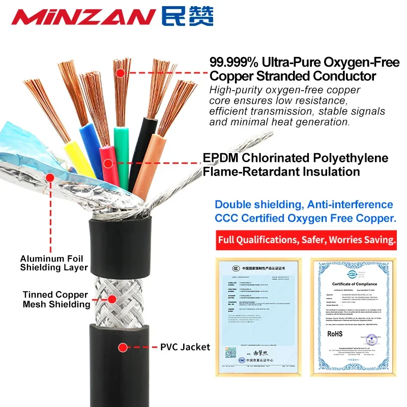 UL2426 สายป้องกัน RVVP 22/20/18/17/15/13AWG 2/3/4/5/6/7/8 Core SHIELDED สัญญาณควบคุมทองแดงลวดฉนวน PVC สายสัญญาณเสียง