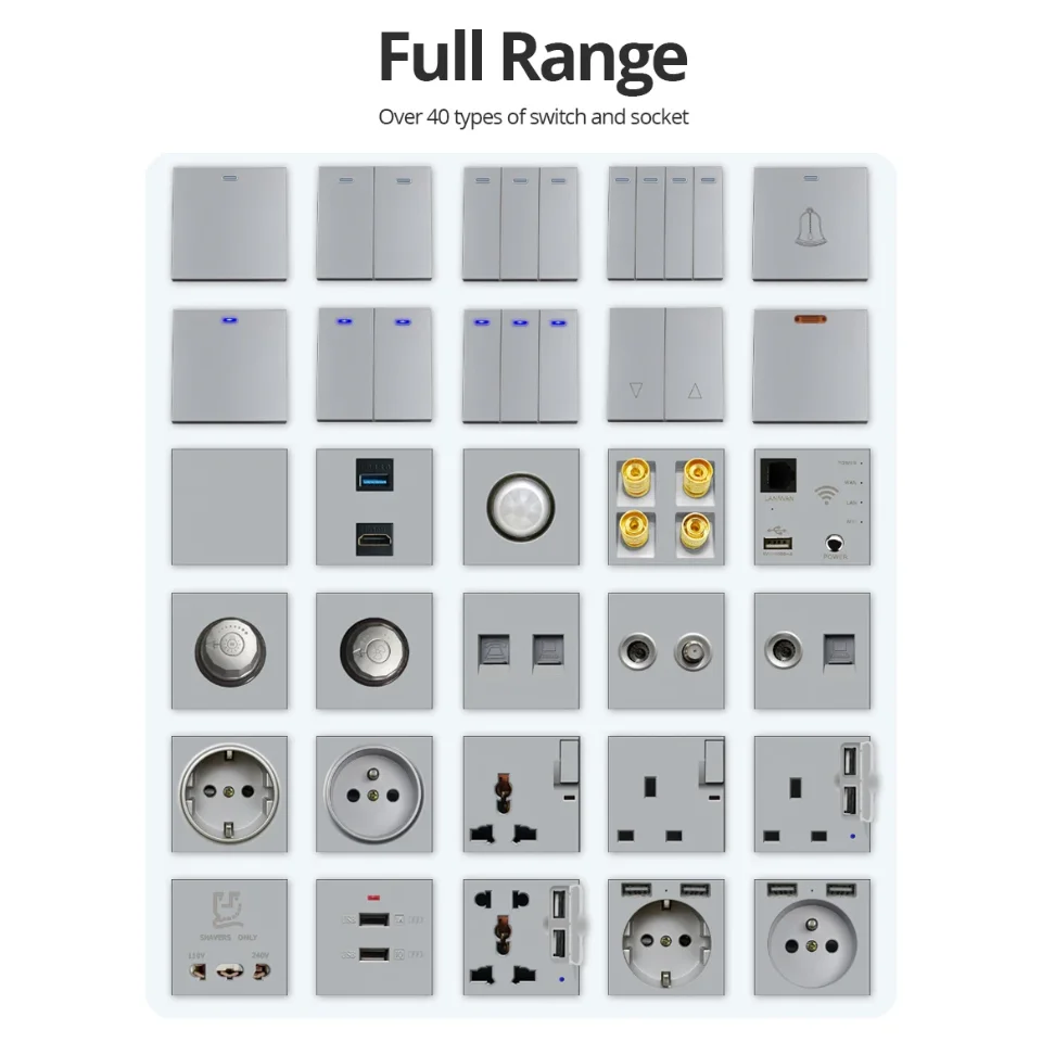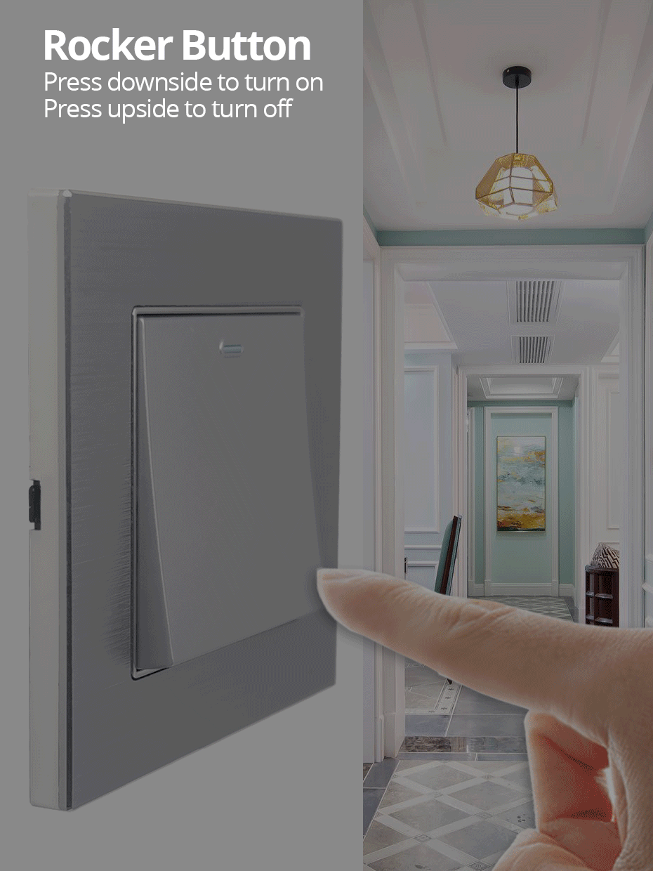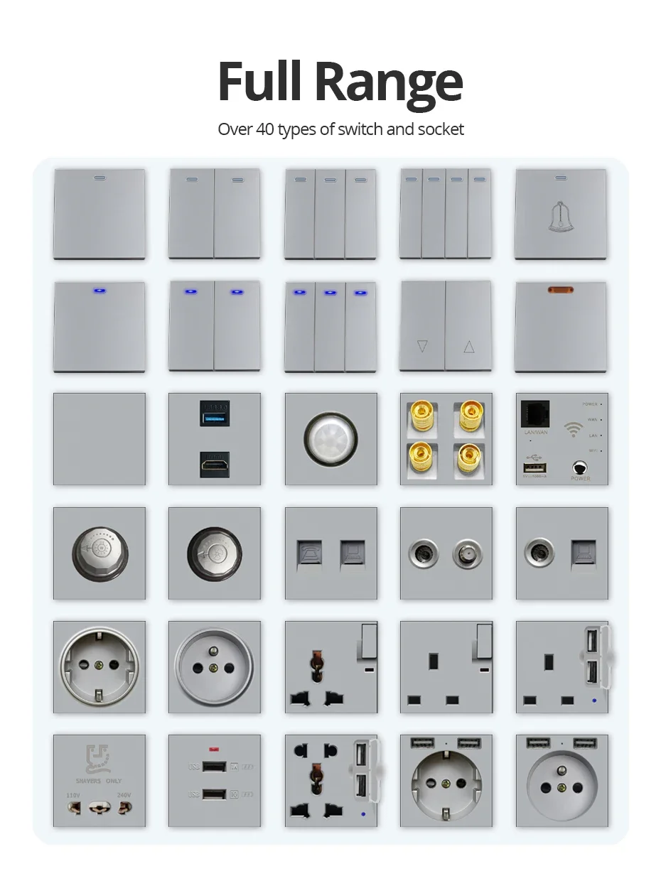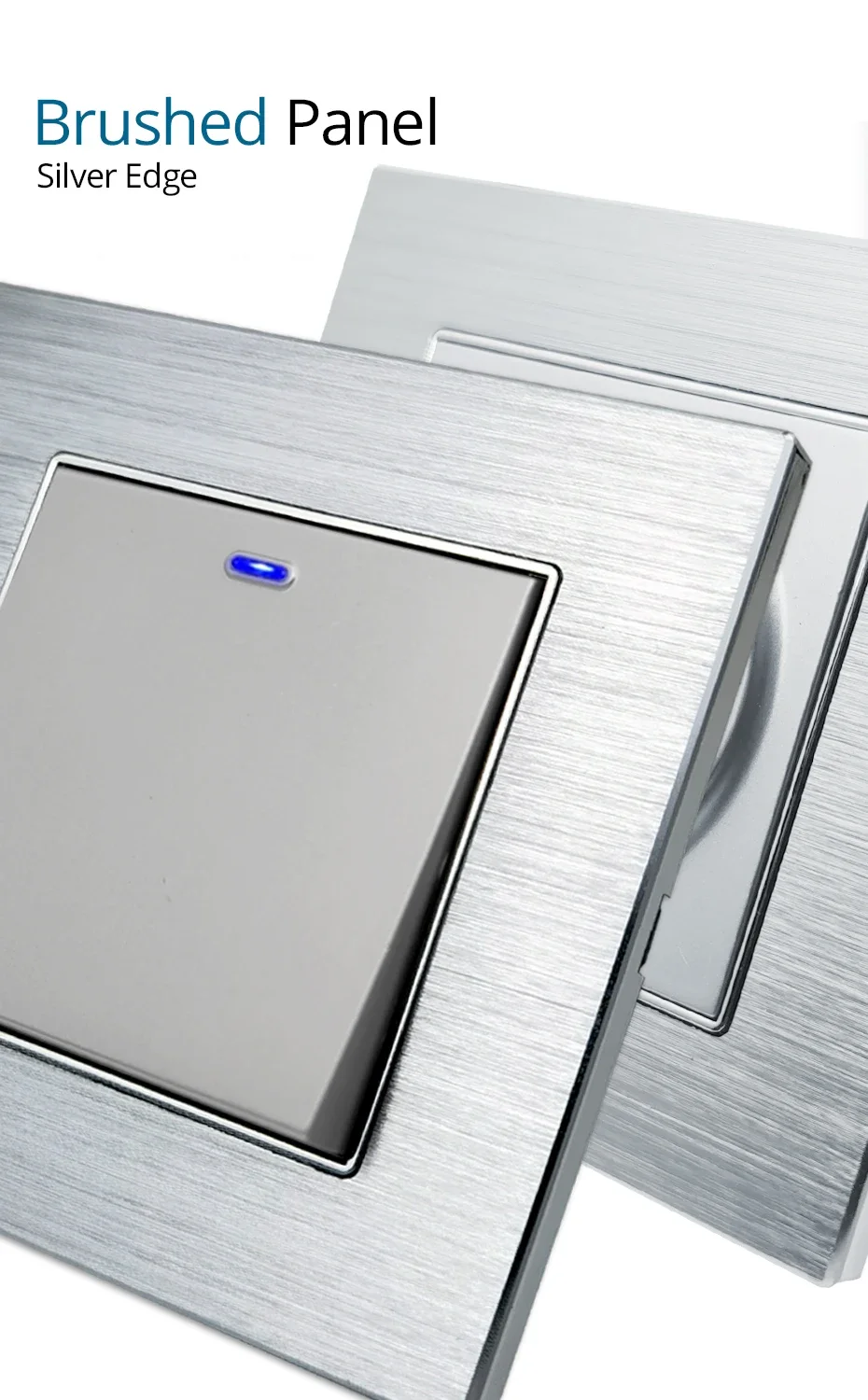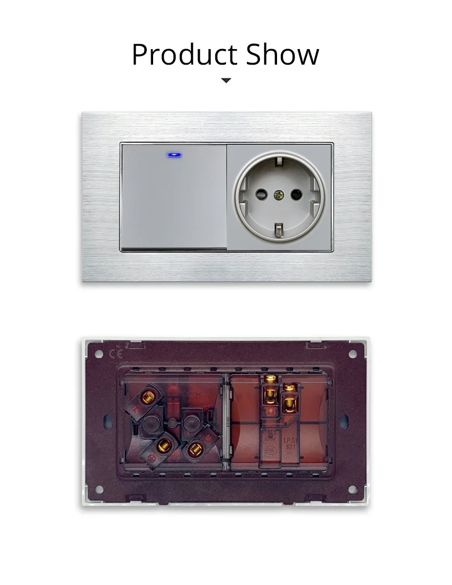 Brushed Silver Push ปุ่มสวิทช์ Illuminated Modular สวิทช์ไฟฟ้าอลูมิเนียมแผ่นสีเทาสวิทช์ภาษาฝรั่งเศสคํายุโรป Wall Socket