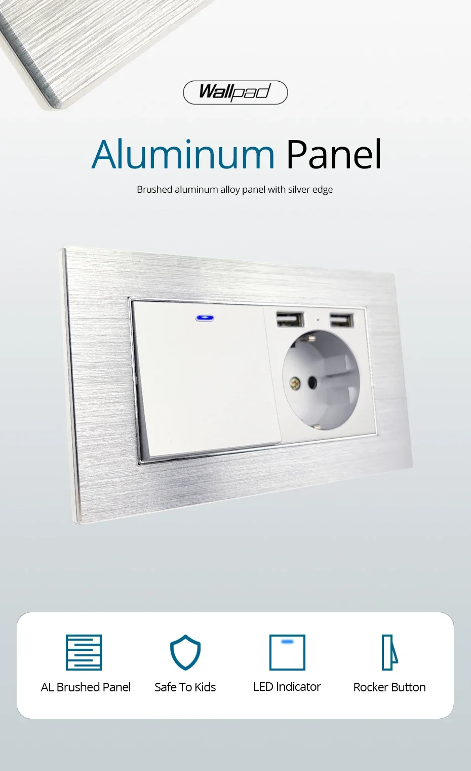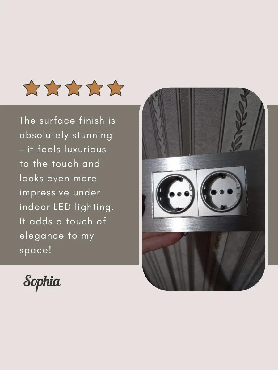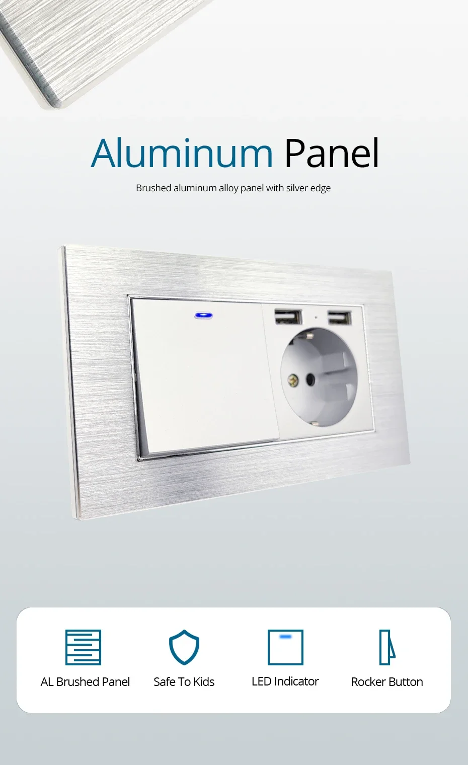 Double EU ภาษาฝรั่งเศสคําไฟฟ้า Power Outlet สีน้ําตาลแปรงแผงอลูมิเนียมผนังซ็อกเก็ต 146*86 มม.Wallpad L6
