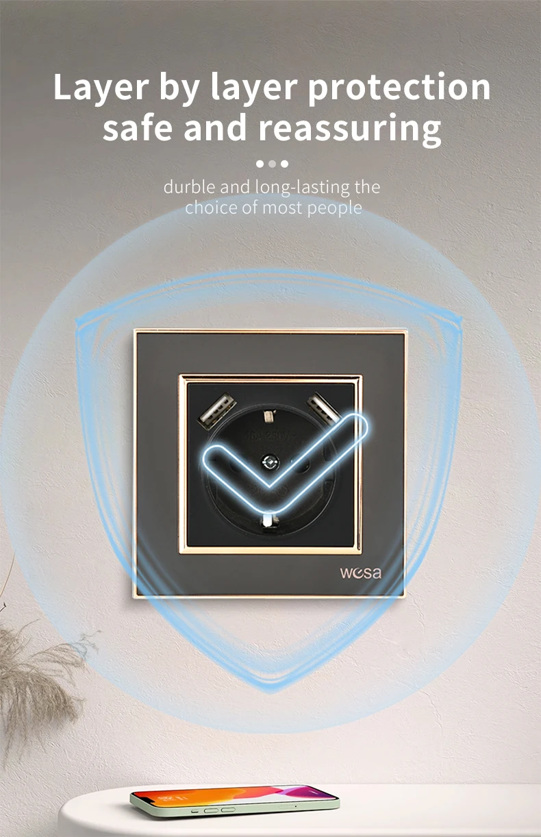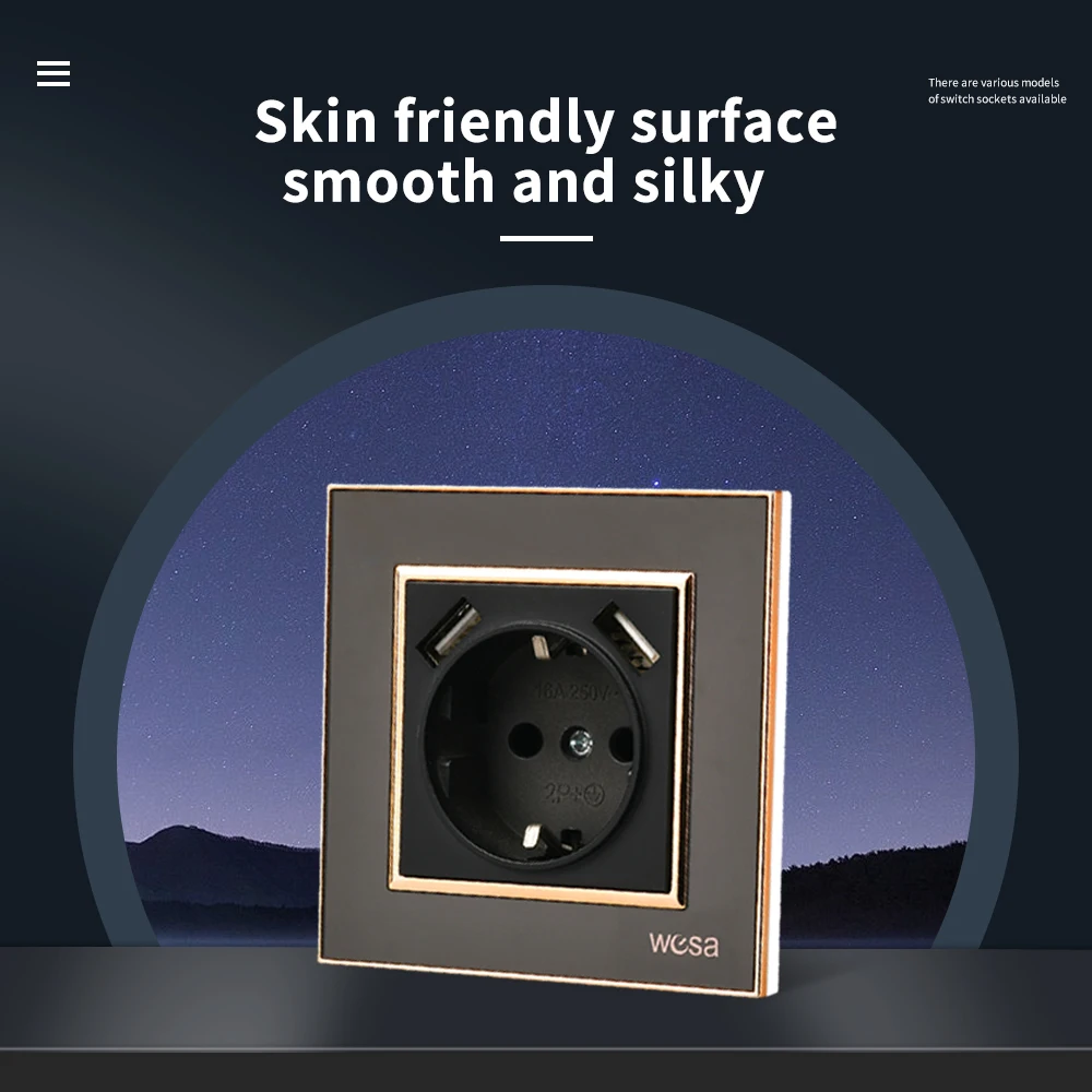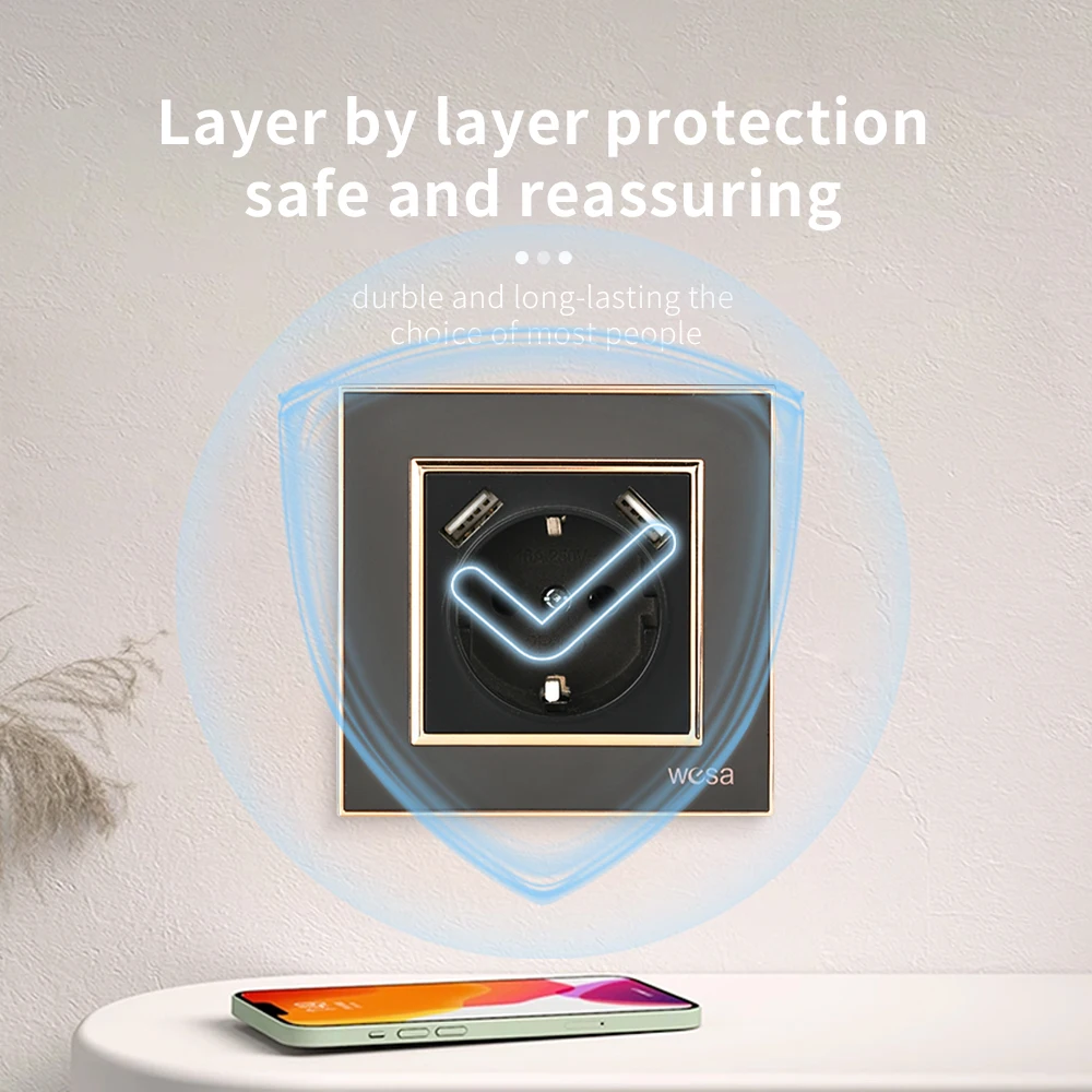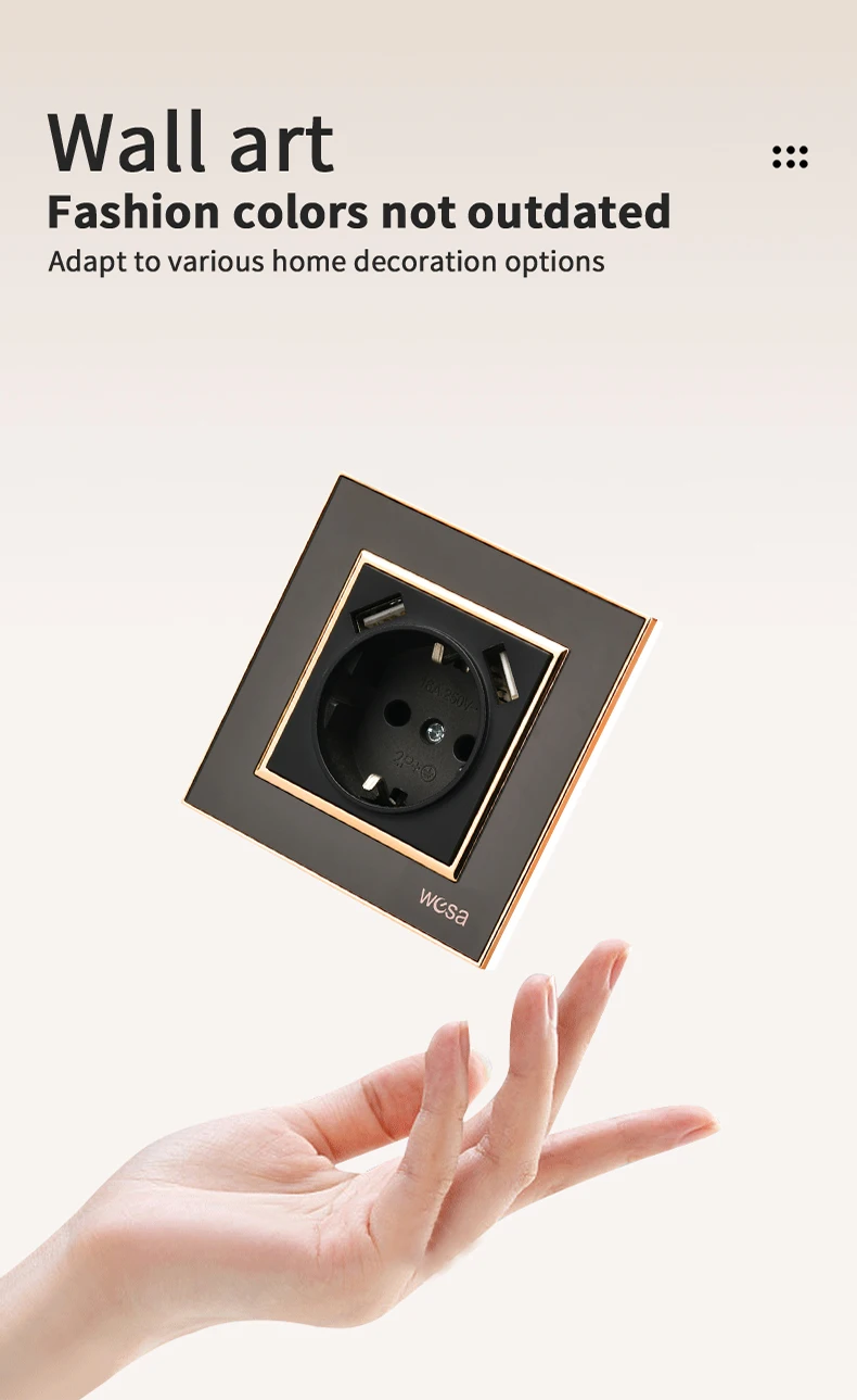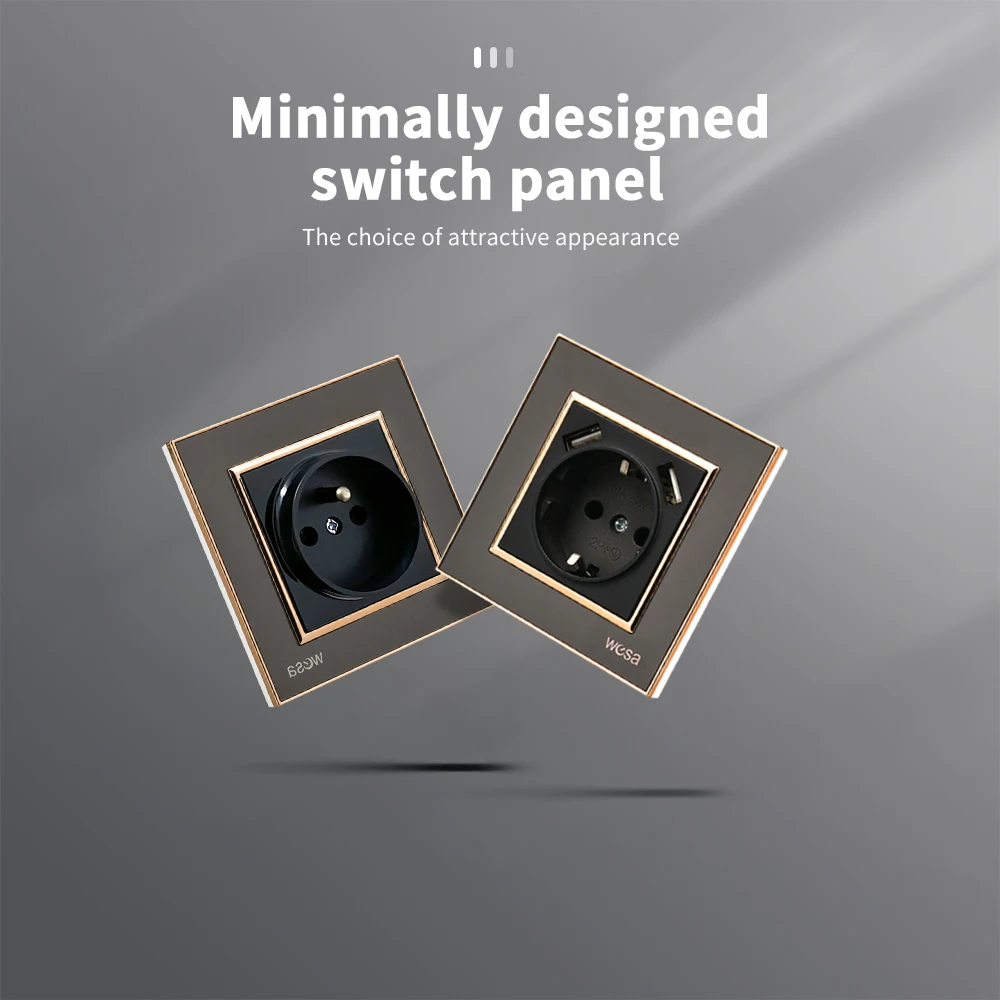 SRAN ภาษาฝรั่งเศสคํา usb wall socket 5V 2.1A, แผงคริสตัลกระจกนิรภัย 16A 220V 82*82 มม. ซ็อกเก็ตไฟฟ้าฝรั่งเศสมาตรฐานพร้อมฝาครอบ