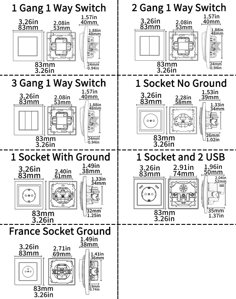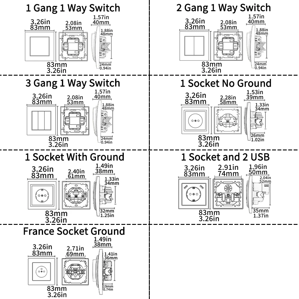 BSEED Mechanical ปุ่มสวิทช์ทีวี ST CAT5 RJ45 ปลั๊ก Type-c USB EU ฝรั่งเศส Power ซ็อกเก็ตฟังก์ชั่น DIY อะไหล่ฟรีผสม