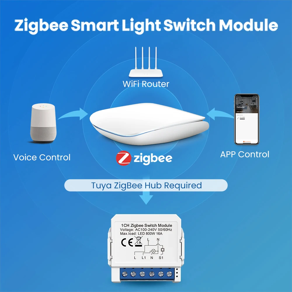 AVATTO Tuya WiFi Zigbee สมาร์ทโมดูลสวิทช์ไฟ, Neutral Wire/ไม่มี Neutral Wire ควบคุม DIY Breaker ทํางานสําหรับ Alexa, Google Home