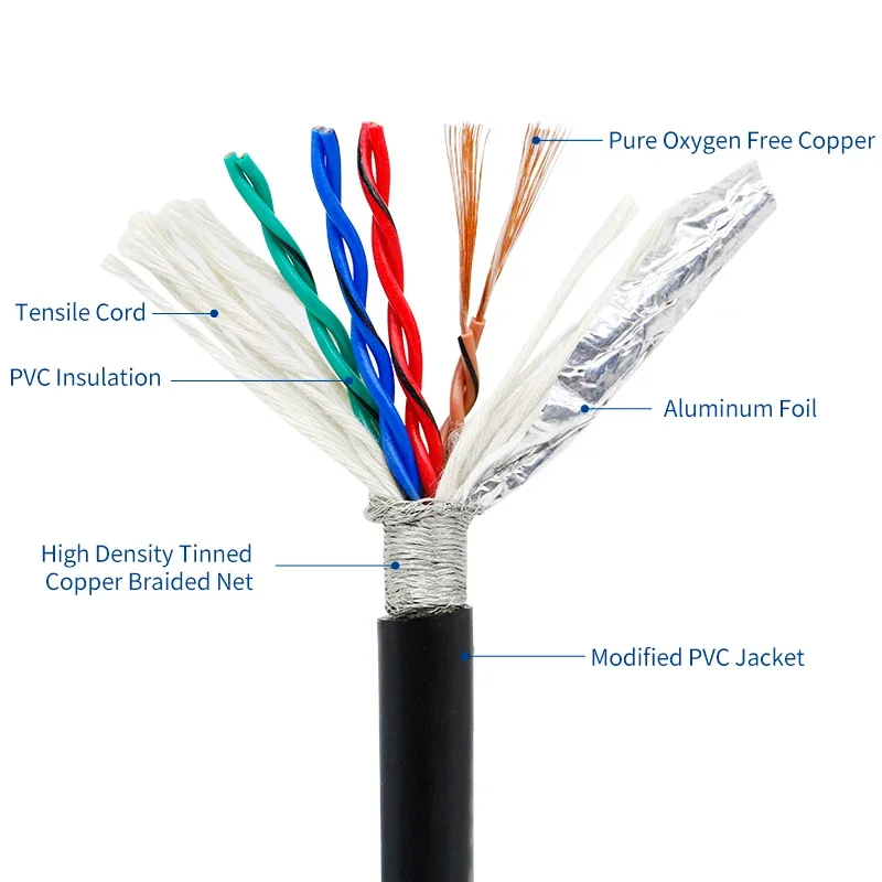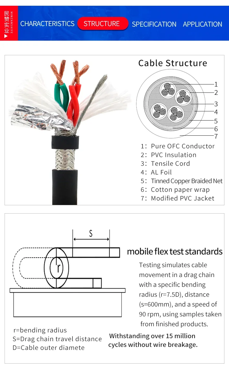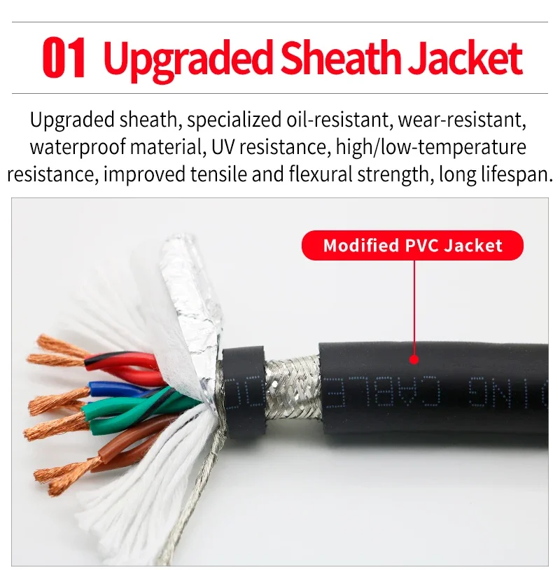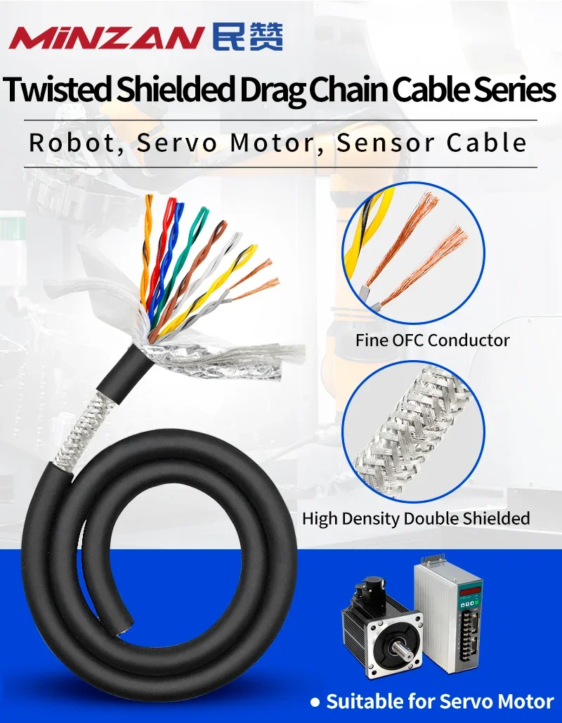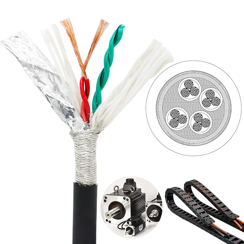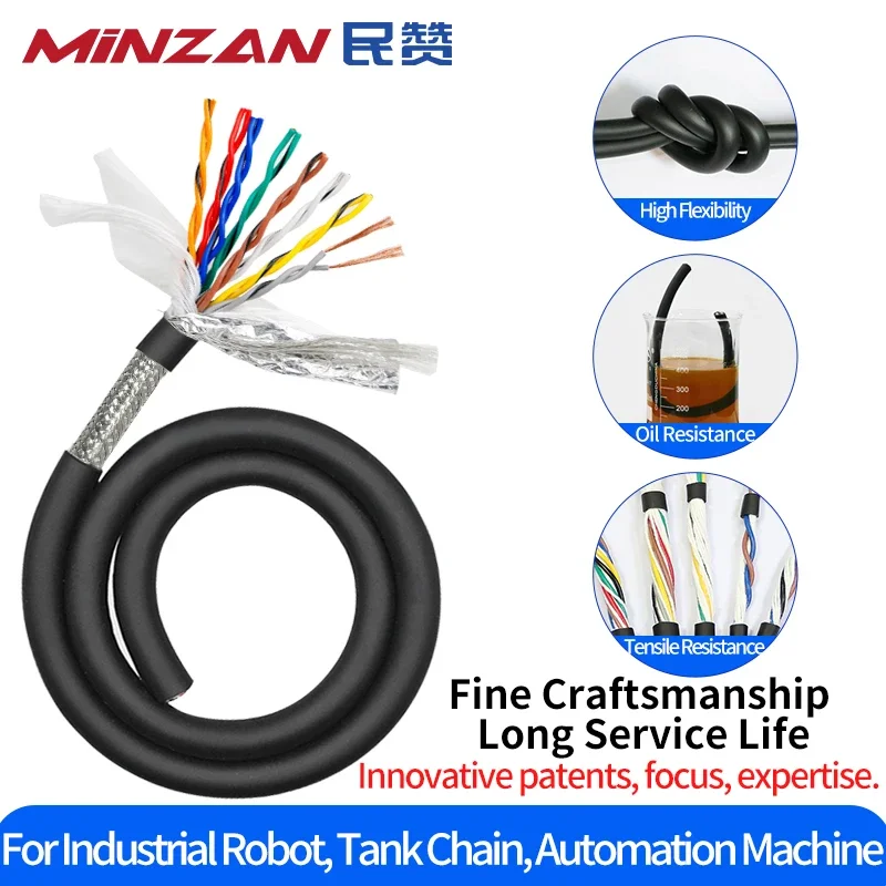 TRVVSP Twisted Shielded Cable 2 4 6 8 10 12 16 Core 24 22 20 18 17 15 13 AWG ยืดหยุ่นสูง CNC Sheathed สายไฟ