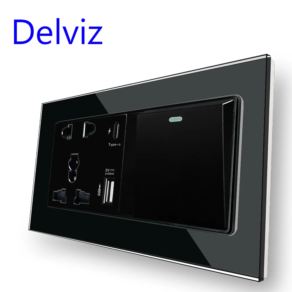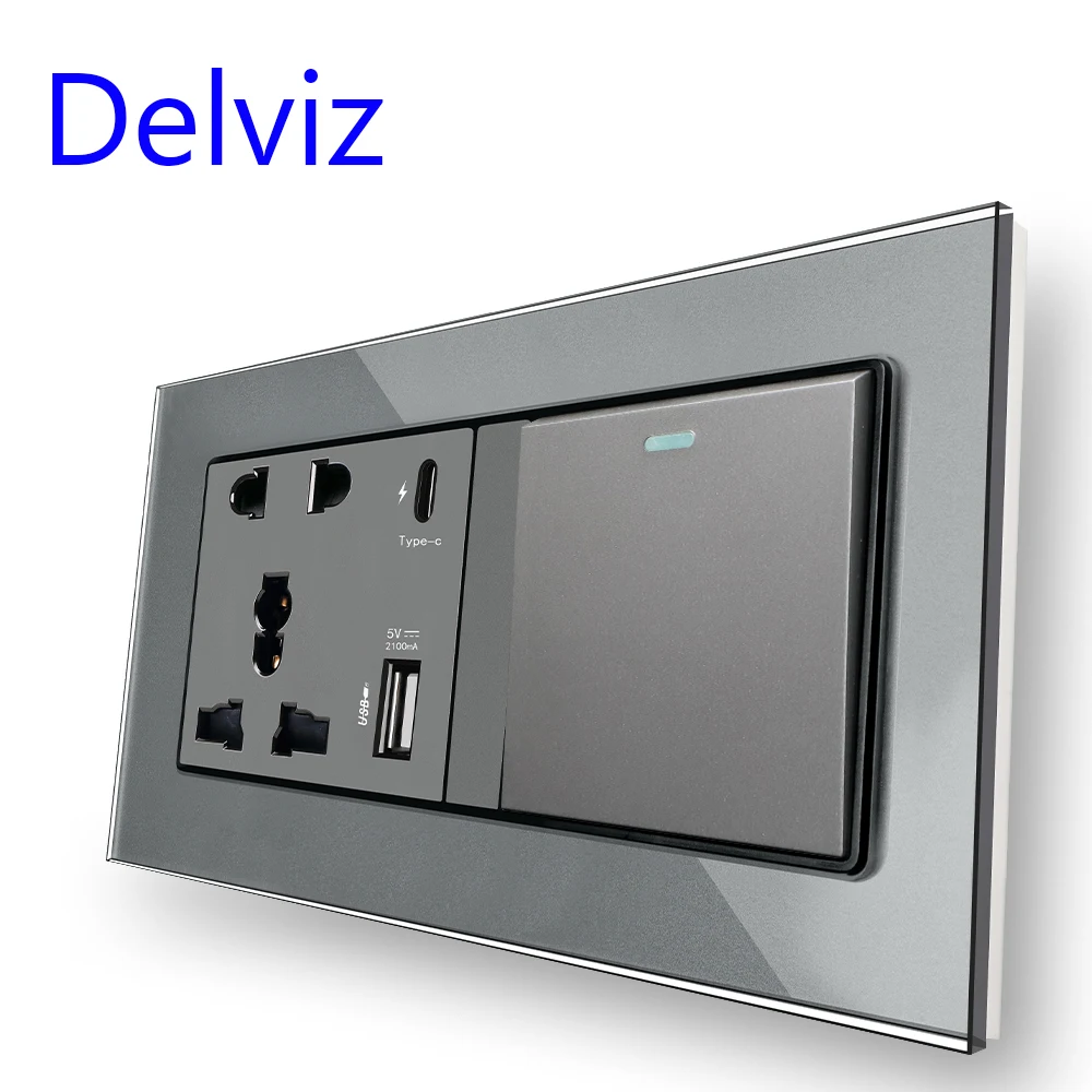 สวิทช์ไฟติดผนัง delviz 16A, ซ็อกเก็ตอินเทอร์เฟส Type C, ชาร์จเร็วอัจฉริยะ4A 18W, หน้าจอโทรศัพท์คริสตัล, เต้าเสียบไฟ USB สากล