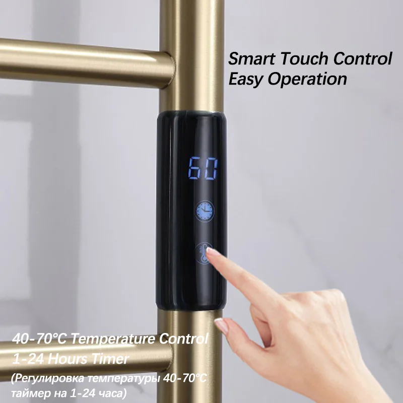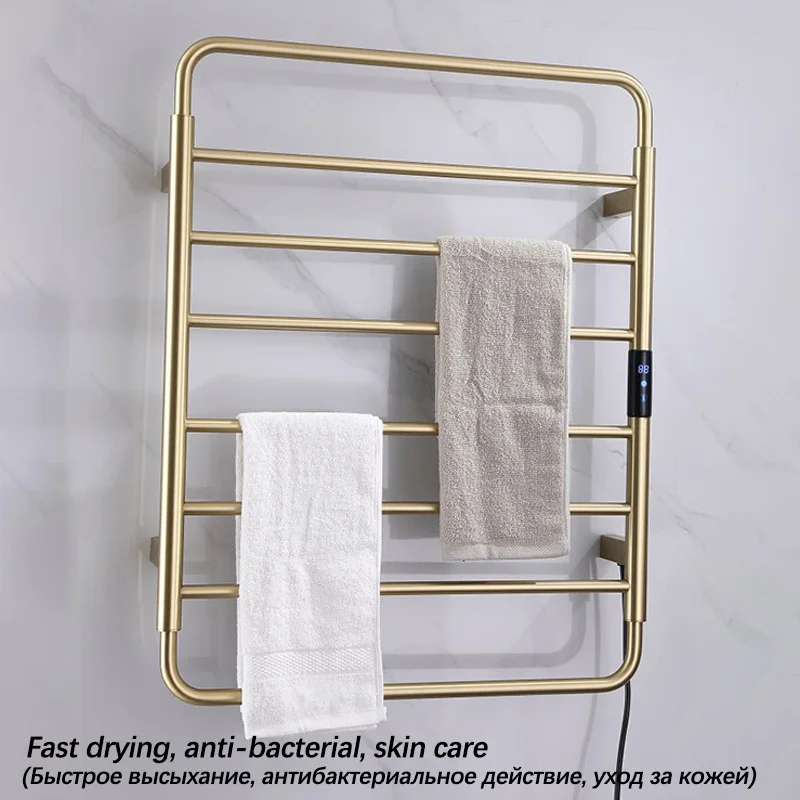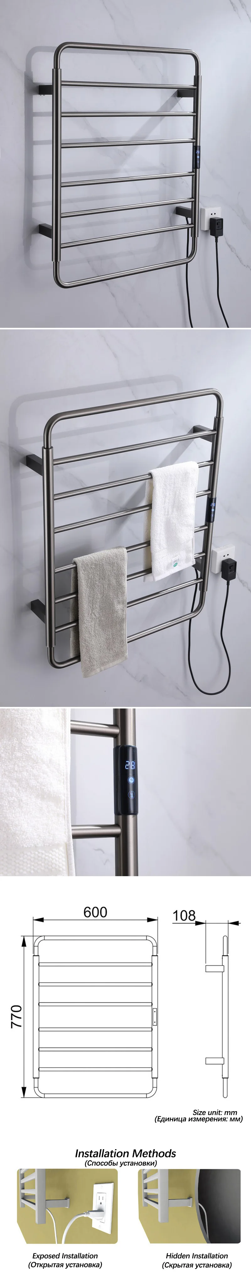แห้งเร็วต้านเชื้อแบคทีเรียห้องน้ําผ้าขนหนูอุ่นอุณหภูมิควบคุมจับเวลาอุ่นราวแขวนผ้าสแตนเลสชั้นวางผ้าขนหนูไฟฟ้า