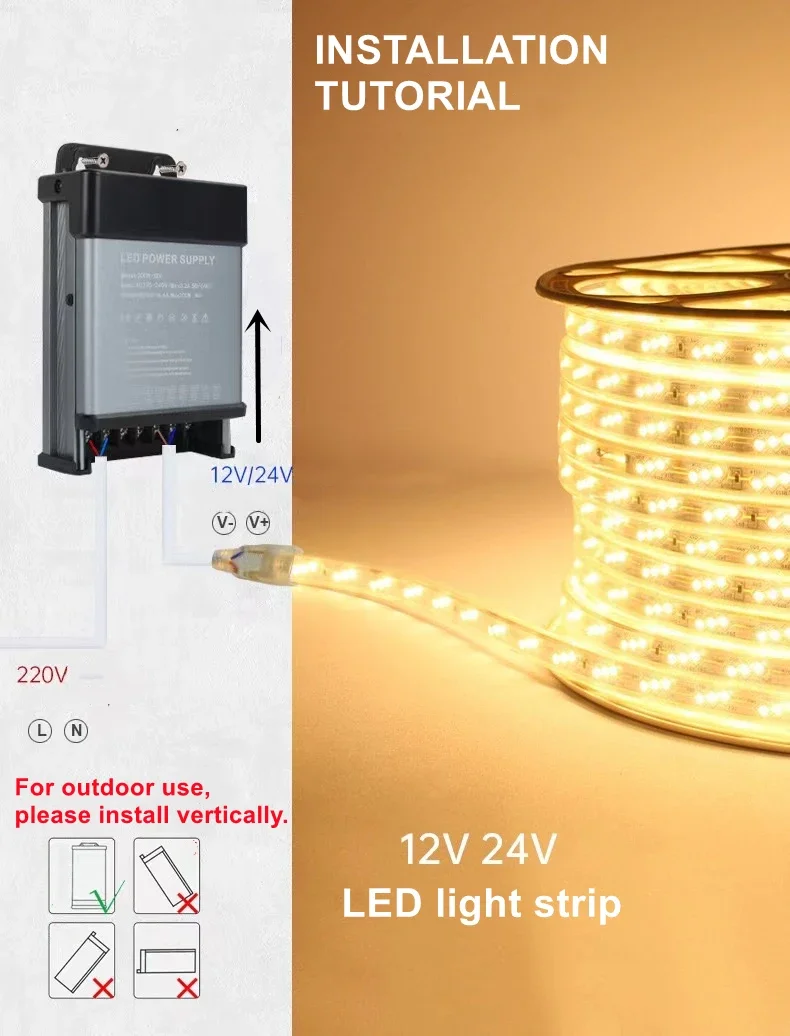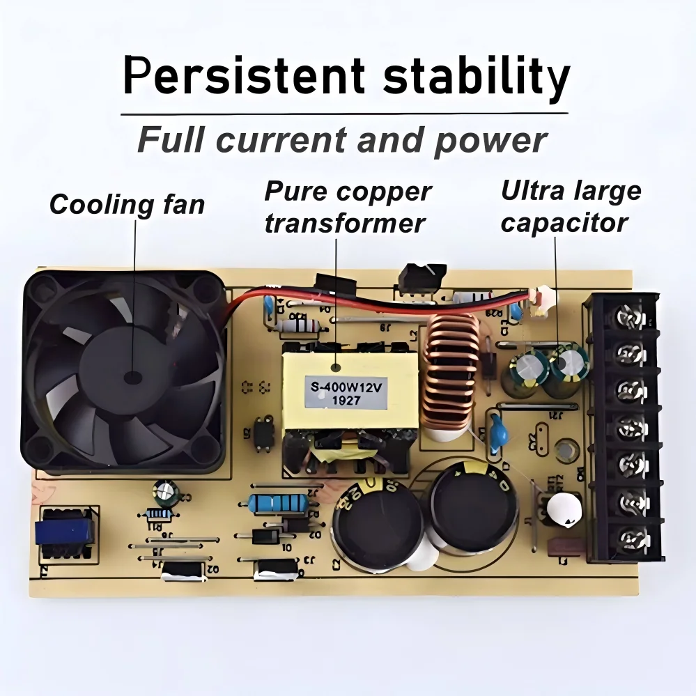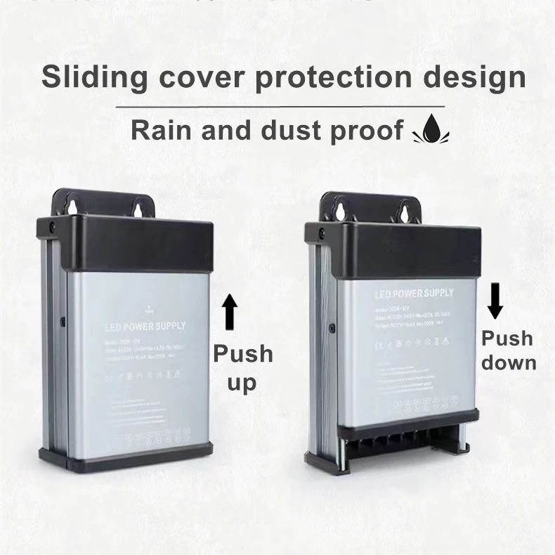 พาวเวอร์ซัพพลายระดับวิศวกรรมสำหรับงานหนัก ทนทานต่อฝน พร้อมพัดลมระบายความร้อน AC220V เป็น DC 12V 24V สำหรับภายนอกอาคาร กันน้ำ กันฝุ่น ไดรเวอร์ LED