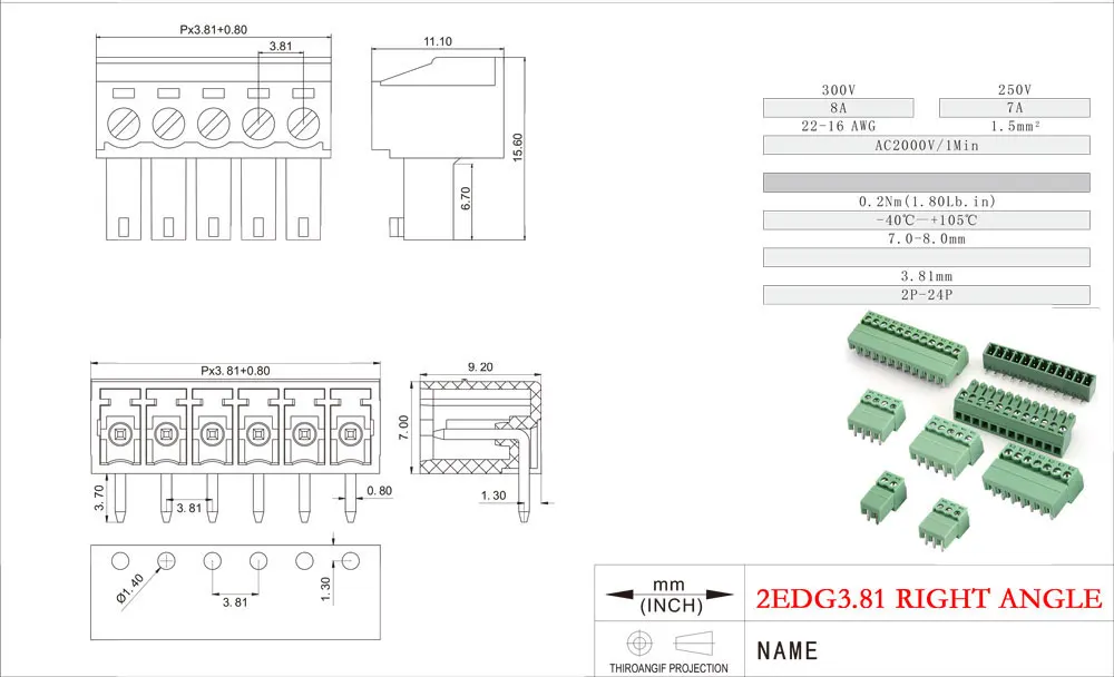 ขั้วต่อสายไฟแบบสกรู KF2EDG ระยะห่าง 3.81 มม. สำหรับแผงวงจรพิมพ์ (PCB) แบบ 2P 3 4 5 6 7 8P 9 10 11 12P~16 พิน แบบเสียบตัวผู้ แบบเสียบตัวเมีย แบบพินเฮดเดอร์