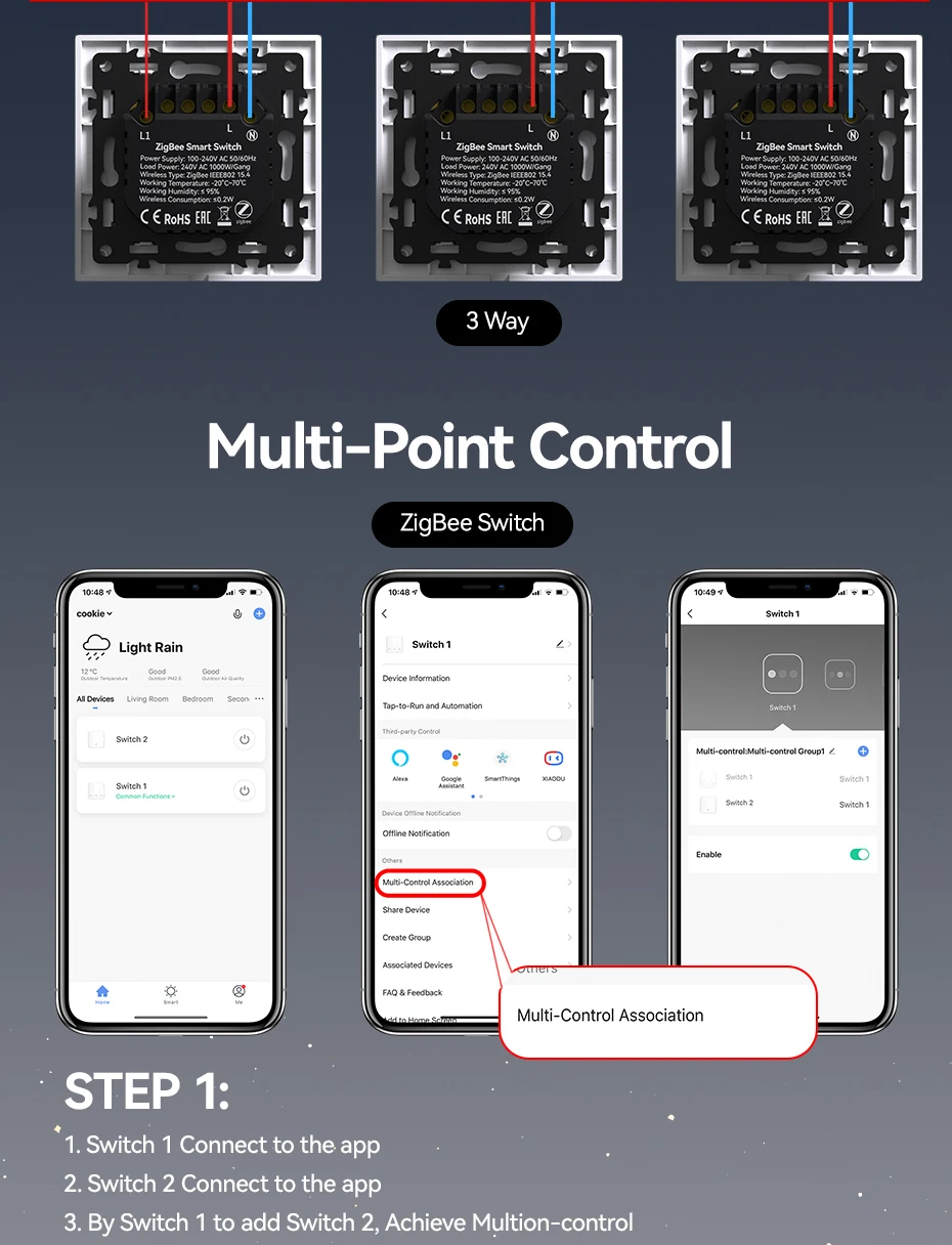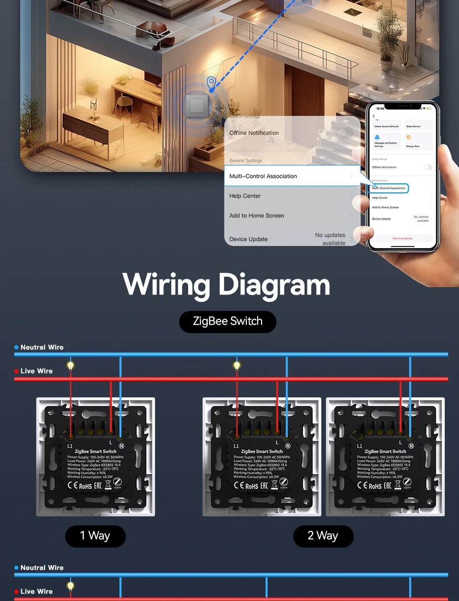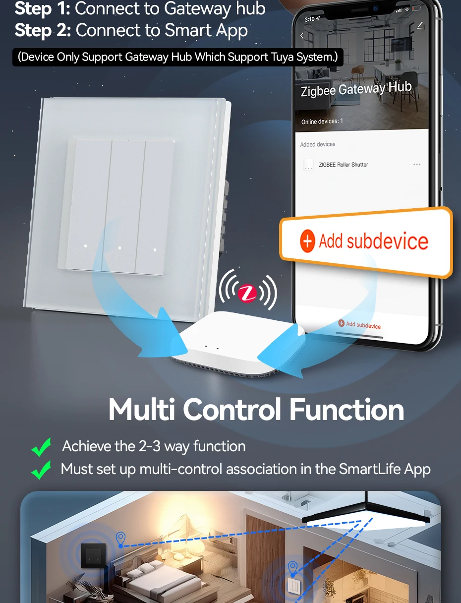 สวิตช์ Zigbee เชื่อมต่อกับแอปต้องผ่านฮับเกตเวย์ zigbee โปรดตรวจสอบให้แน่ใจว่าคุณมีก่อนซื้อ