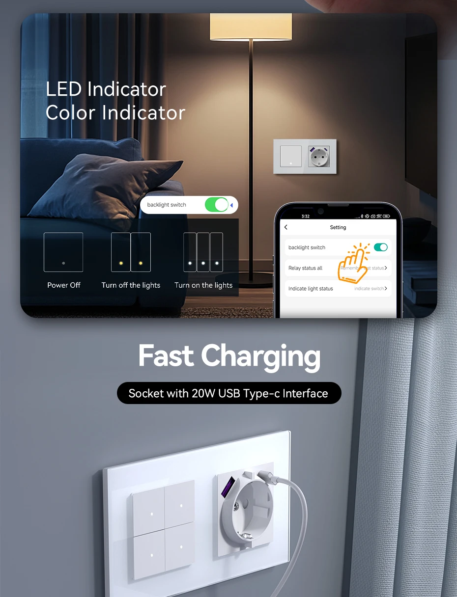 Glass Panel & Iron Plate & Plastic Switch Module |