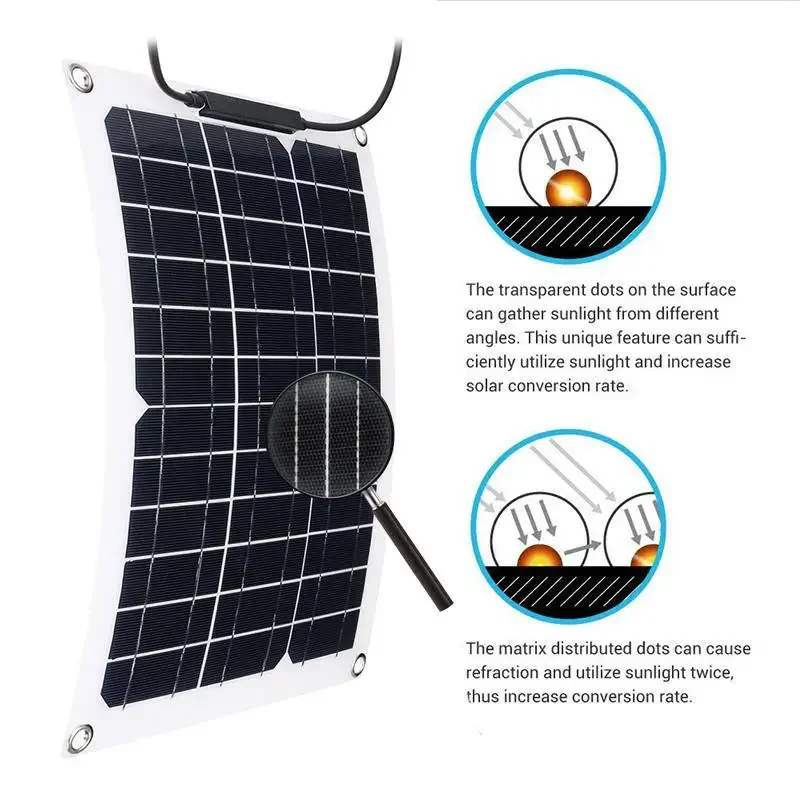 ชุดชาร์จพลังงานแสงอาทิตย์ 500W: แผงโซลาร์เซลล์แบบยืดหยุ่นและโค้งงอได้ 12V พร้อมตัวควบคุม 100A, พอร์ต USB คู่สำหรับโทรศัพท์, กันน้ำสำหรับรถยนต์ เรือ RV แคมป์