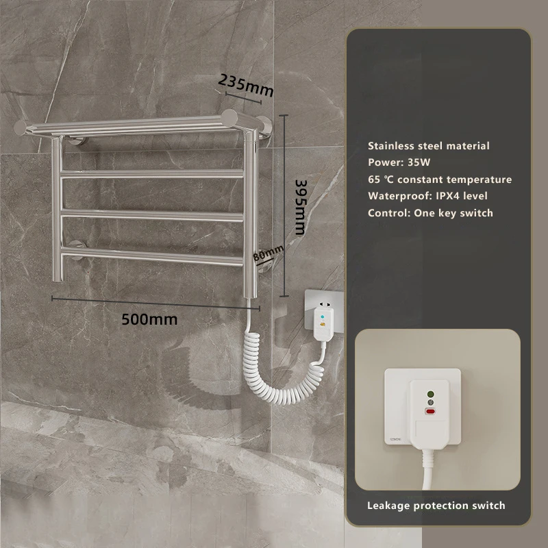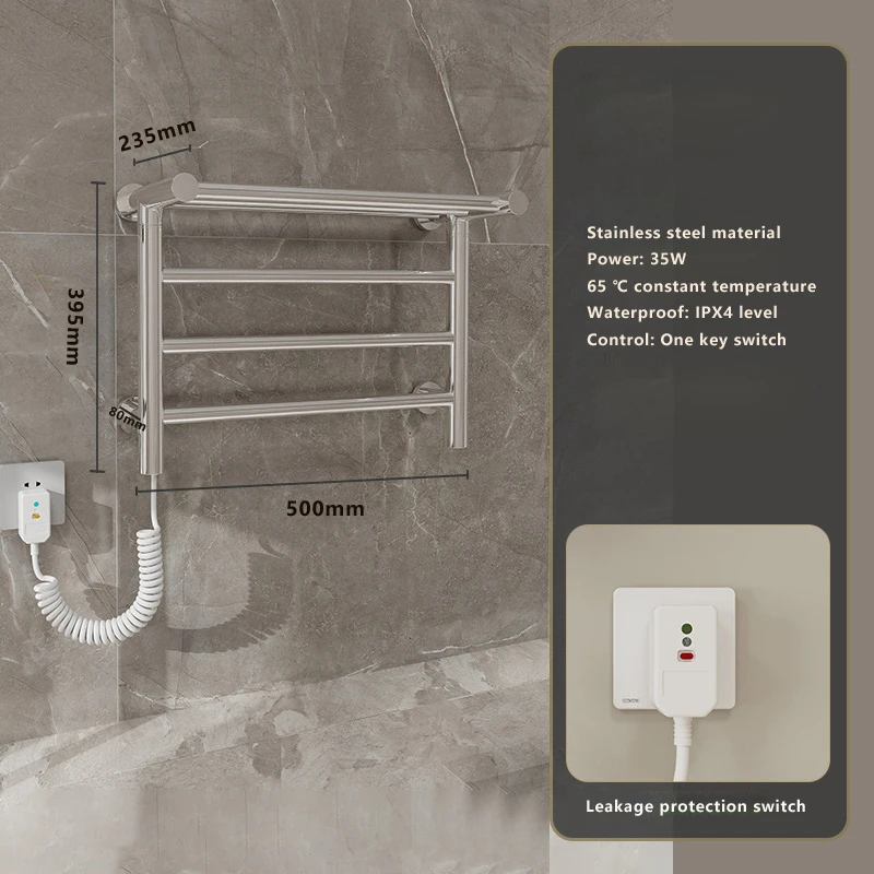 เครื่องอุ่นผ้าเช็ดตัว 304 สแตนเลส 65 ° C อุณหภูมิคงที่ชั้นวางผ้าเช็ดตัวไฟฟ้าอุ่นอัจฉริยะ 500 * 395 * 235 มม. 110 V/220 V