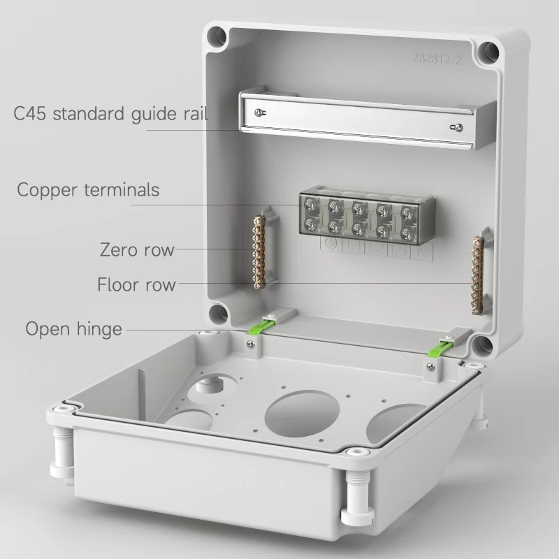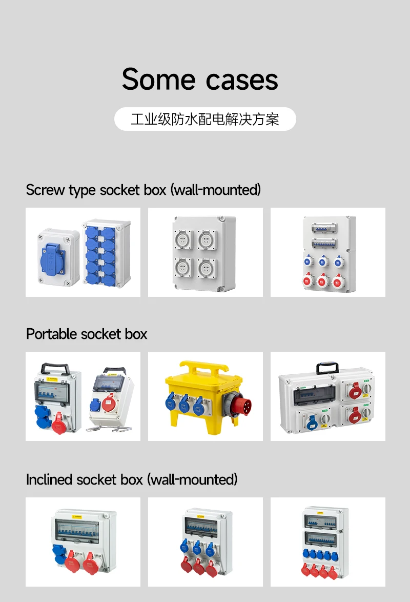 IP66 อุตสาหกรรมซ็อกเก็ตกล่องพลาสติกฉนวนกล่องสวิทช์ 250V 380V ติดผนังกลางแจ้งกันน้ํากล่องกระจายผสม