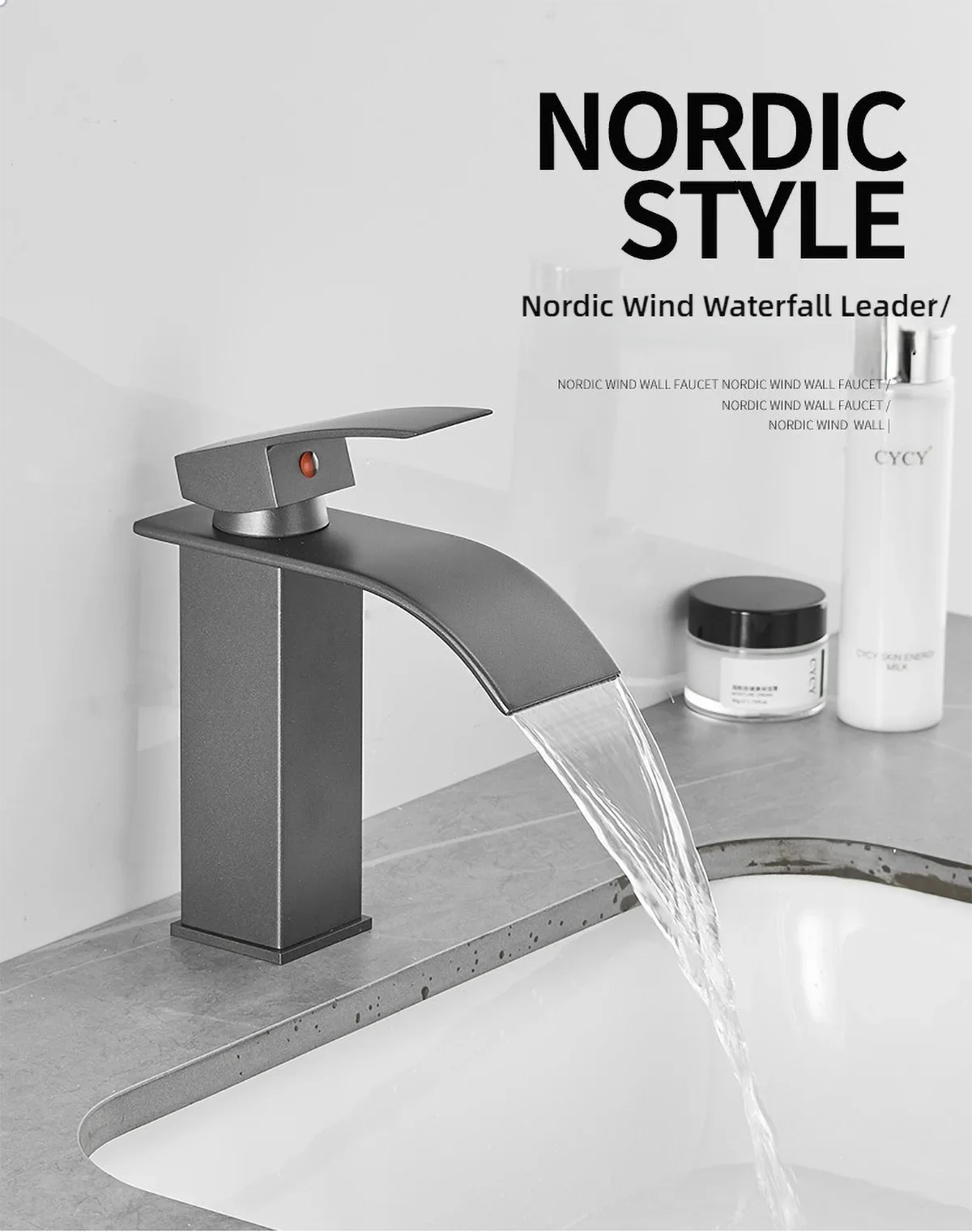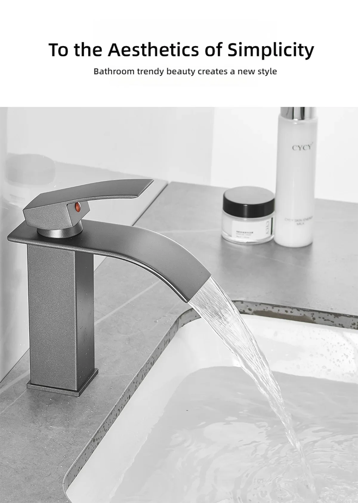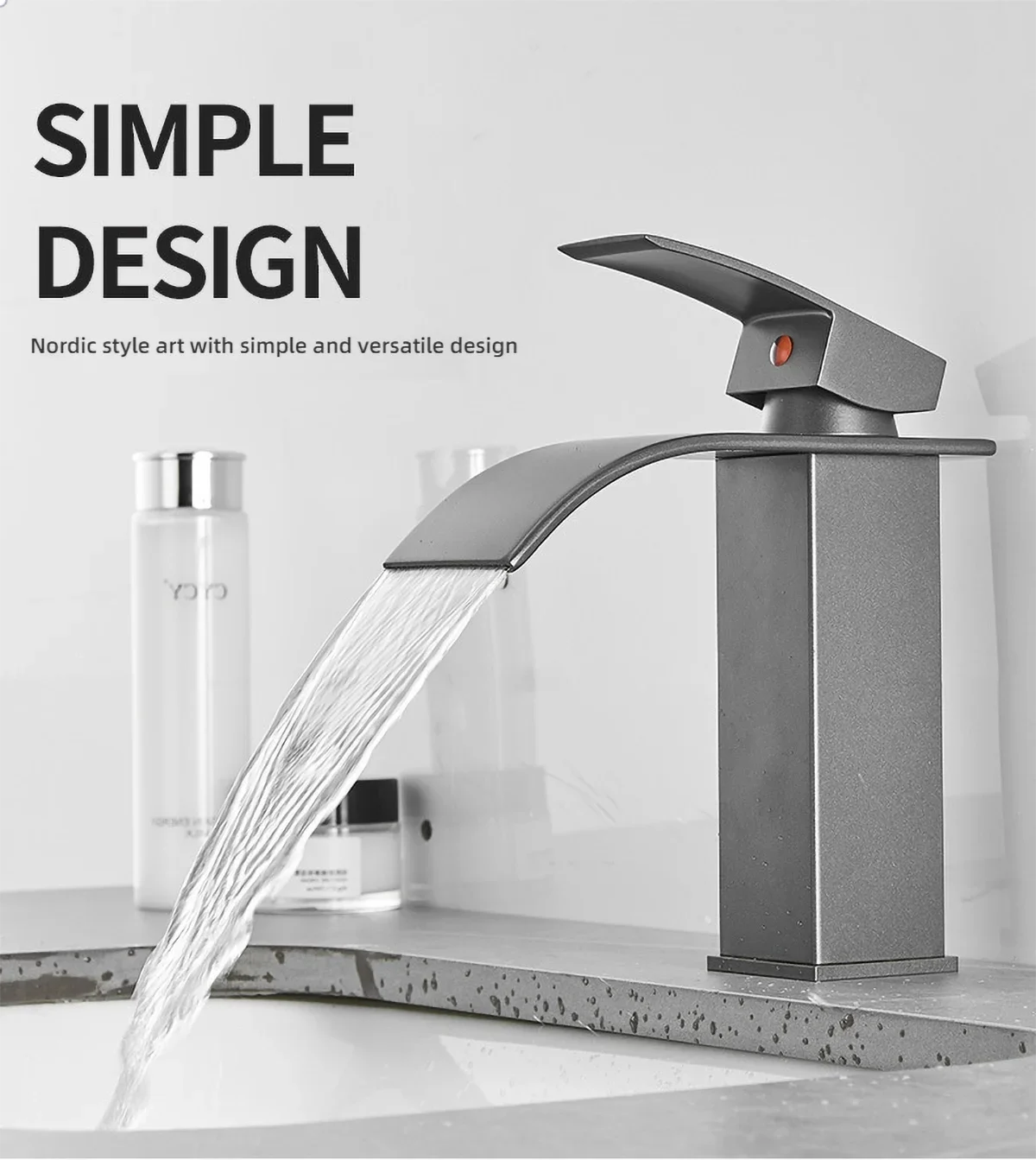 ก๊อกน้ําสแตนเลสเคาน์เตอร์ห้องน้ําออกแบบที่เรียบง่ายน้ําตก Outlet TAP ห้องน้ําอ่างล้างหน้าก๊อกน้ําอุปกรณ์เสริม
