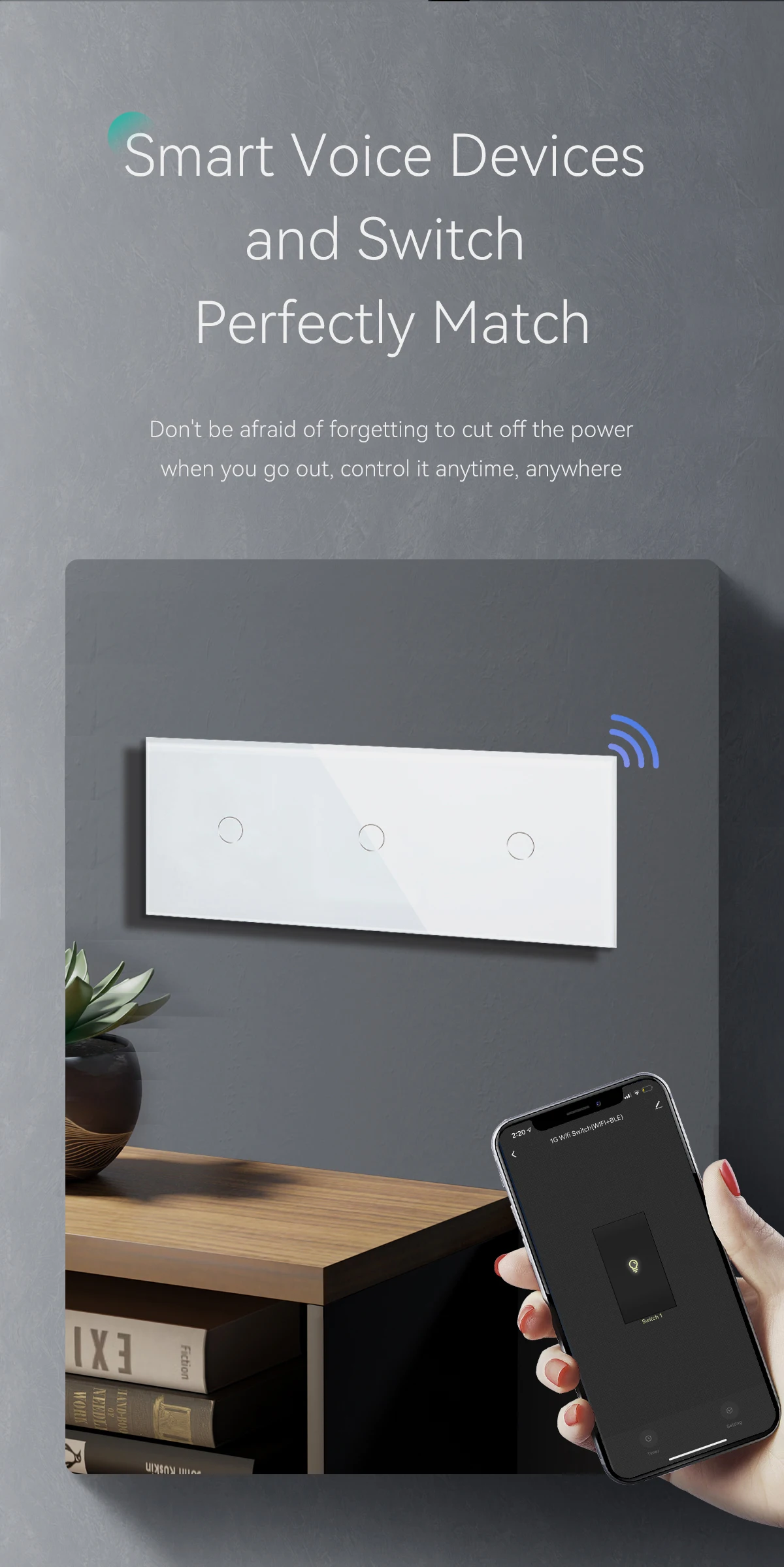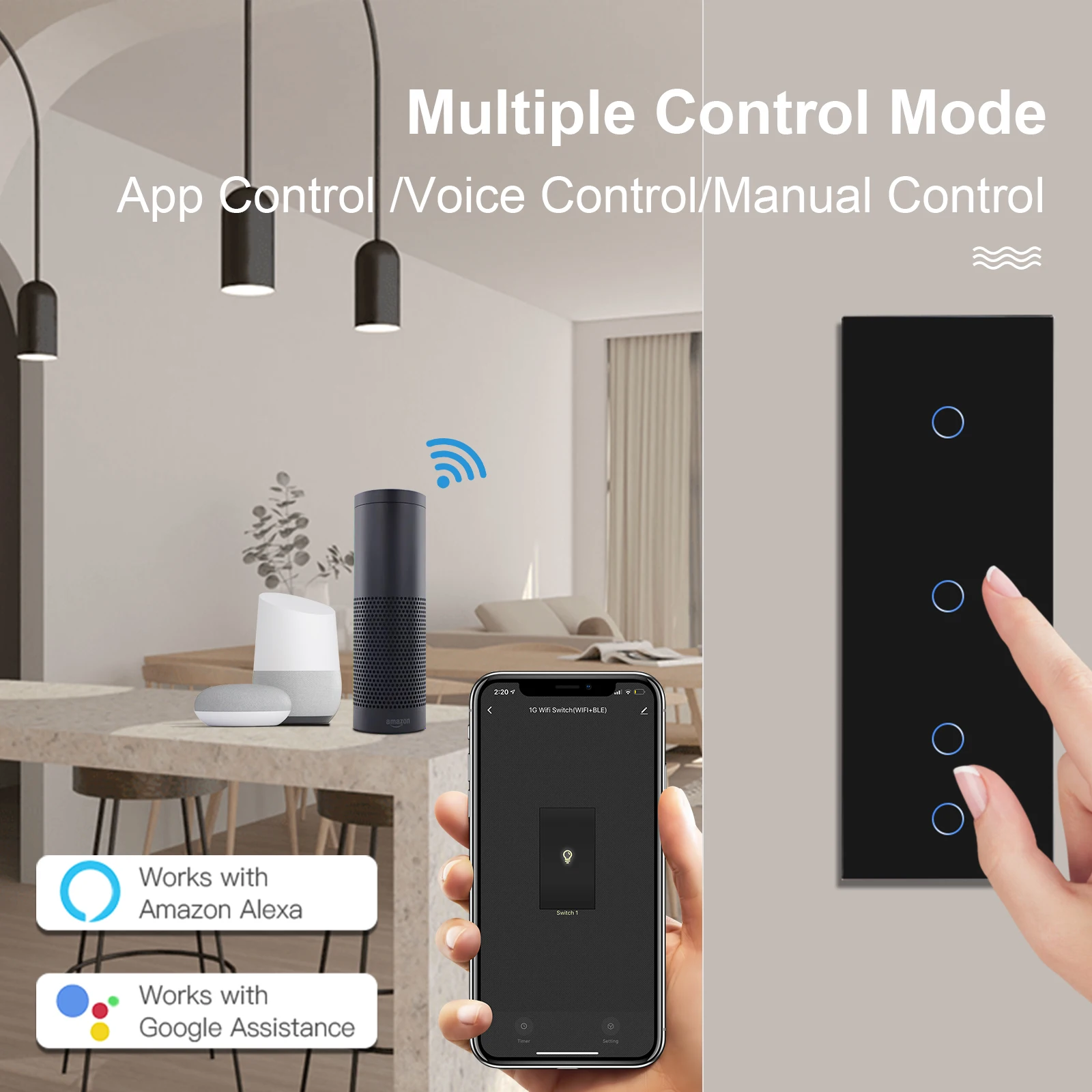 สวิตช์สัมผัส WIFI ของเราสามารถควบคุมได้ผ่านสมาร์ทโฟนของคุณและทั้งหมดรองรับ Google Home, Amazon Alexa และ Tuya APP