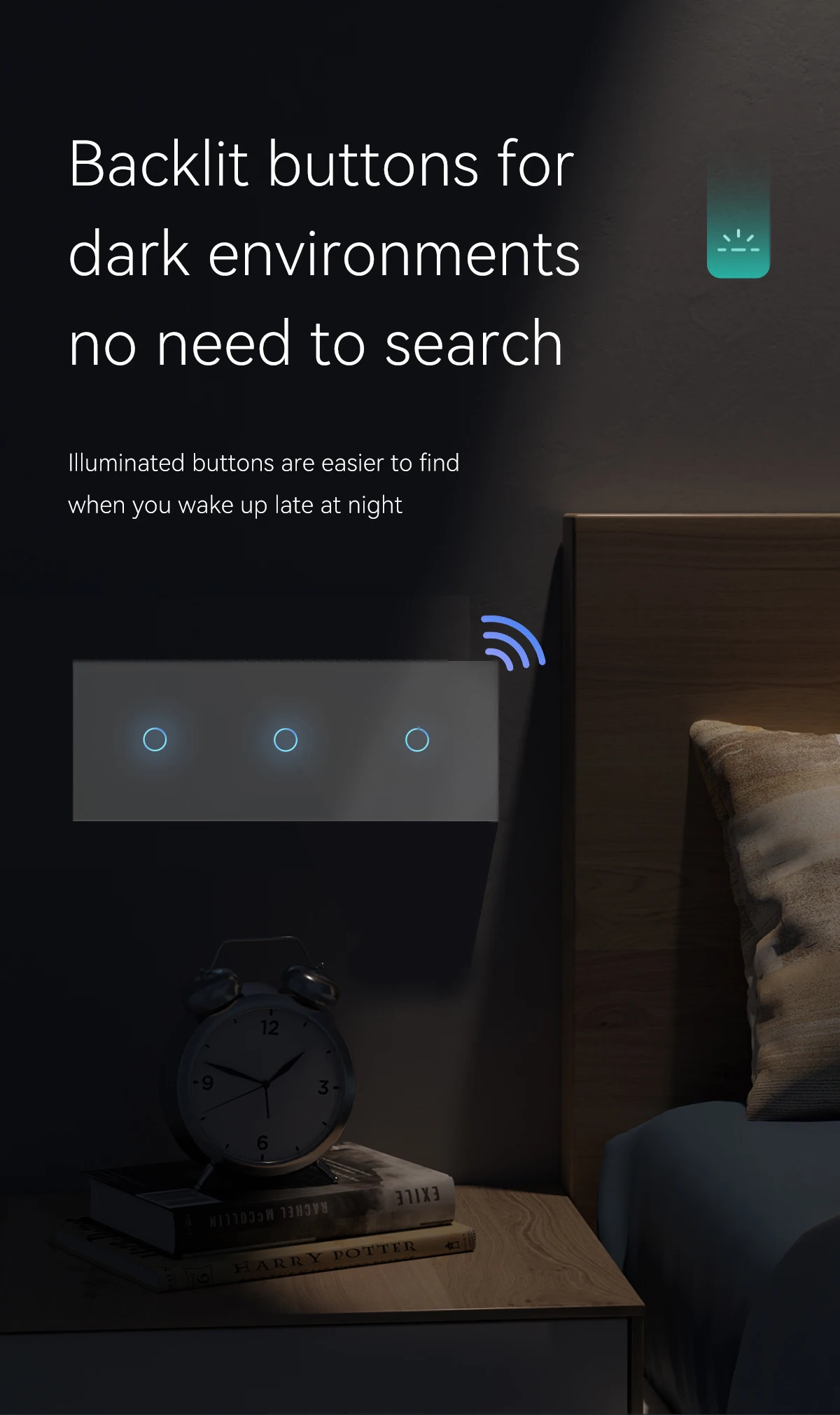 Bseed สวิตช์สัมผัส WIFI มีไฟ LED สีฟ้าที่แผงด้านหน้าของแต่ละกลุ่มซึ่งช่วยให้มองเห็นได้ในที่มืดและหาง่ายในเวลากลางคืน