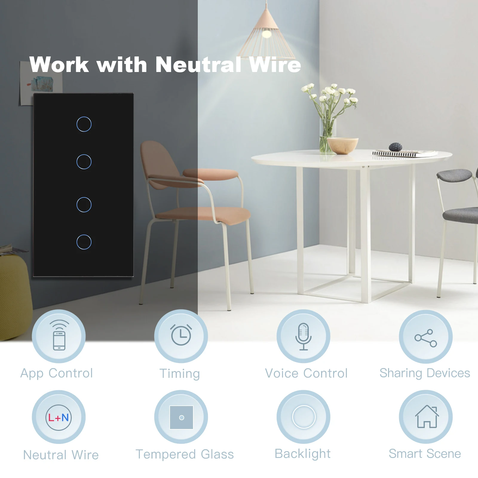 สวิตช์ระบบสัมผัสอัจฉริยะเข้ากันได้กับหลอดไฟ LED หลอดไส้ฮาโลเจนหลอดฟลูออเรสเซนต์และหลอดฟลูออเรสเซนต์ขนาดกะทัดรัด สวิตช์อัจฉริยะ WiFi (ต้องใช้สายไฟกลางในการติดตั้ง)