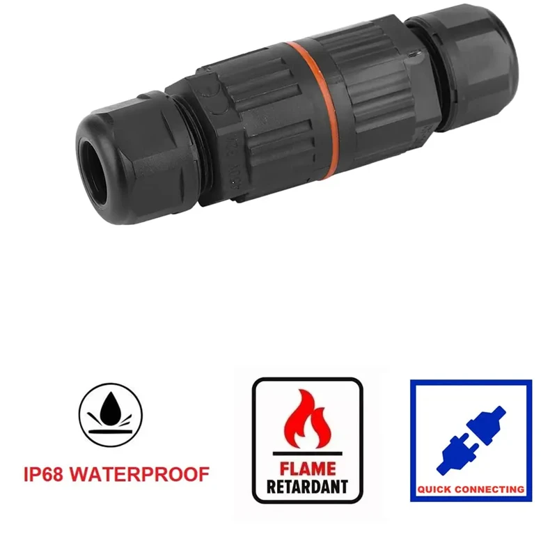 3. Electric Safety: 2 way wires electric junction box/electrical connector 2 pins for cable size: Ø 0.16-0.39 inch (4-10 mm). Support Low DC & High A/C Power waterproof connector, our waterproof connector can be used for 2-core and 3-core connections.