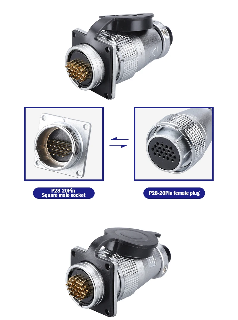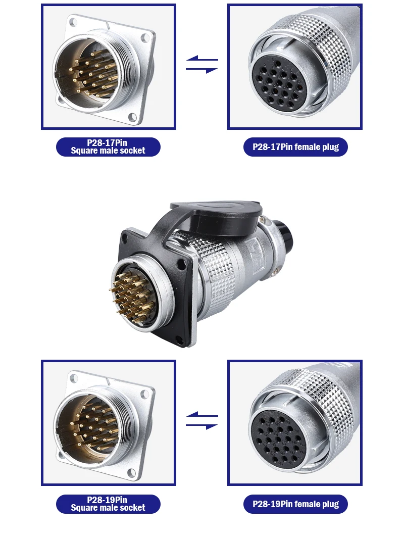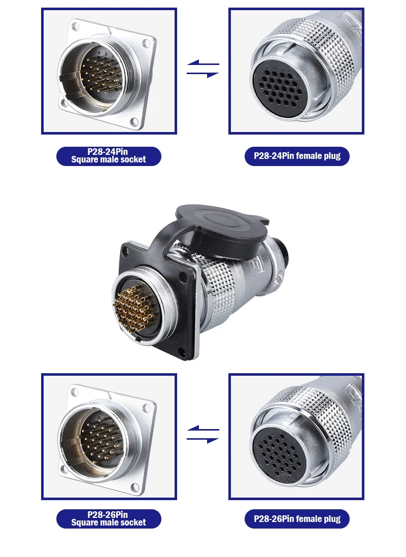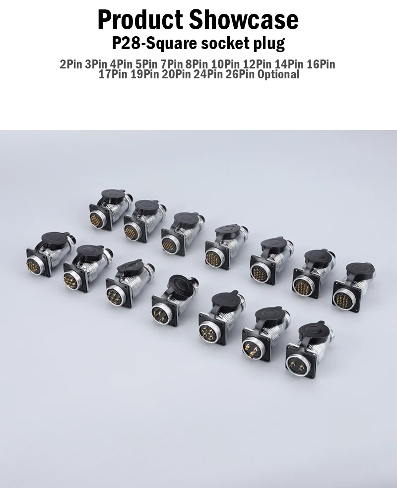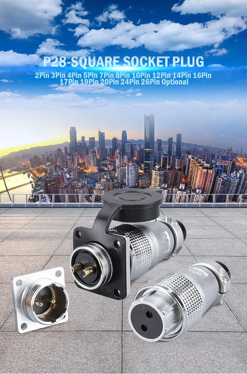 ขั้วต่อหลอดไฟ LED ปลั๊กสี่เหลี่ยมการบิน P28-วงกลม, ข้อต่อก้น, ชายและ Female.2/3/4/5/7/10/12/14/16/19/20/24ขา P28K2Q PLS28