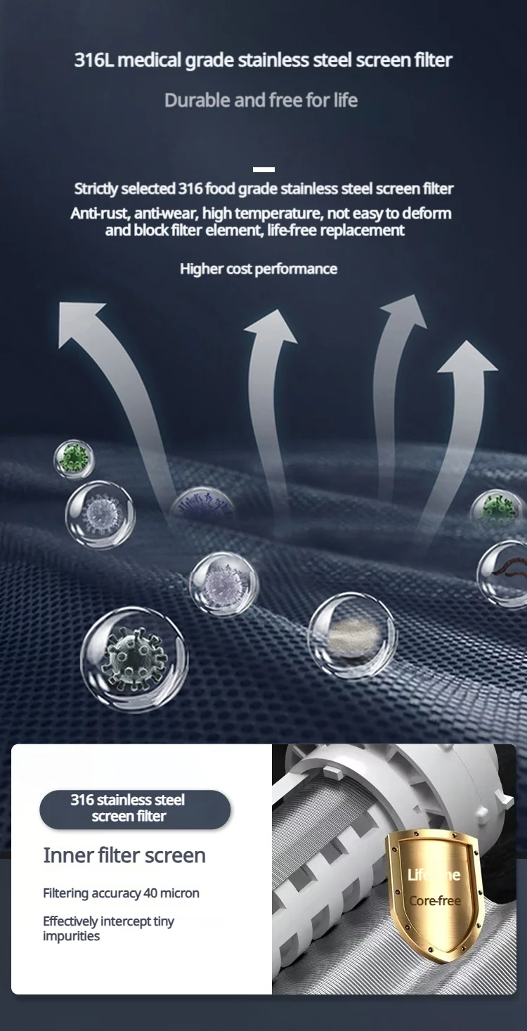 เครื่องกรองน้ำสแตนเลสฟอลีย์คุณภาพสูง 220V สำหรับดื่มโดยตรง ระบบกรองอัลตร้าฟิลเตรชั่น 7 ขั้นตอน FW