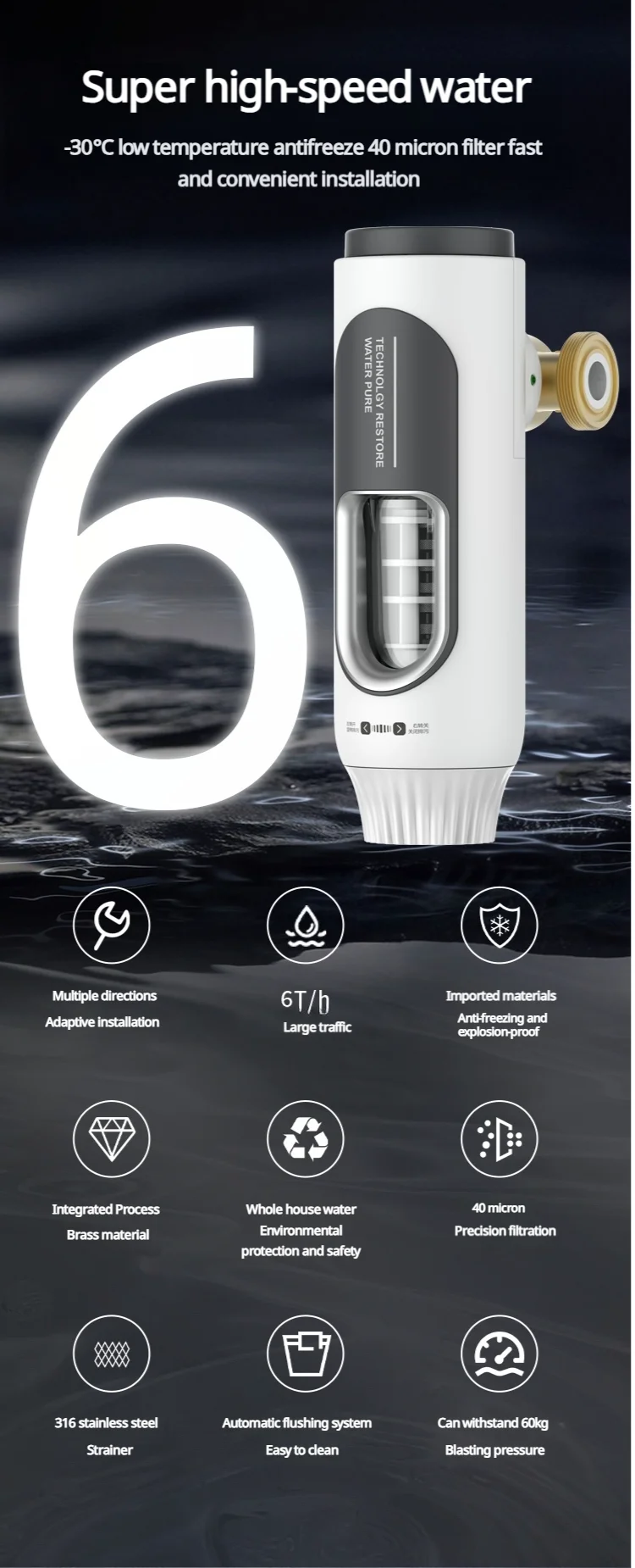 BORVA 6000L/H ระบบกรองน้ําอัจฉริยะ – ตัวกรองล่วงหน้าทําความสะอาดตัวเองอัตโนมัติสําหรับท่อประปาส่วนกลางในบ้าน อัตราการไหลสูง