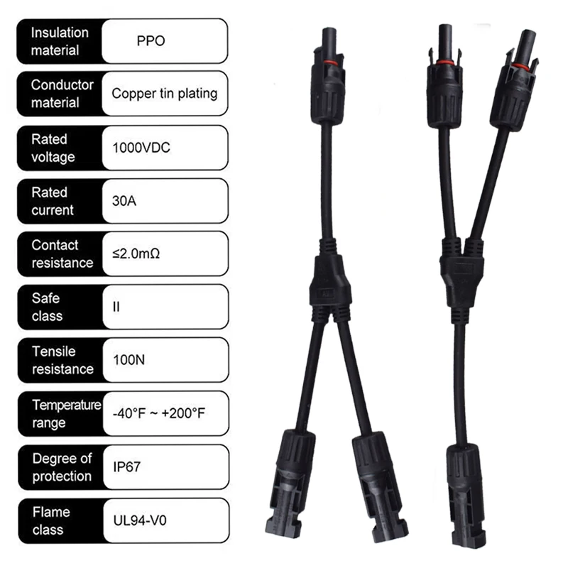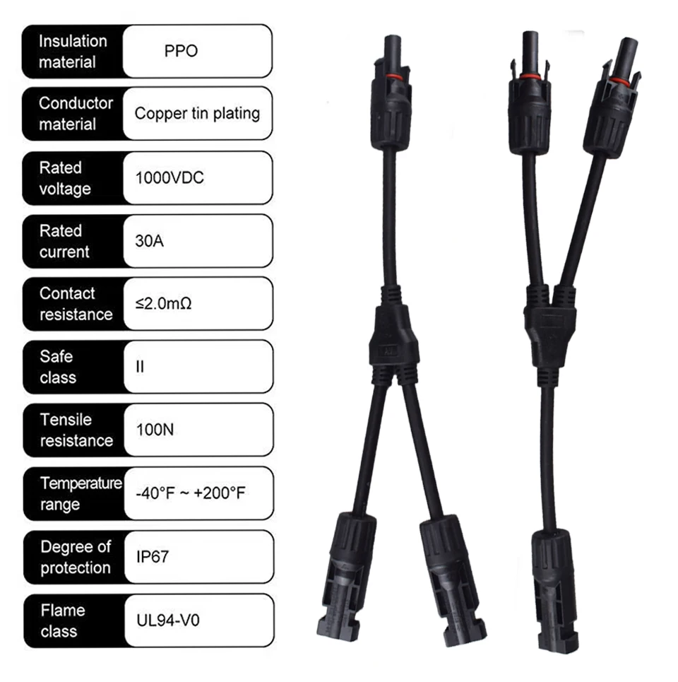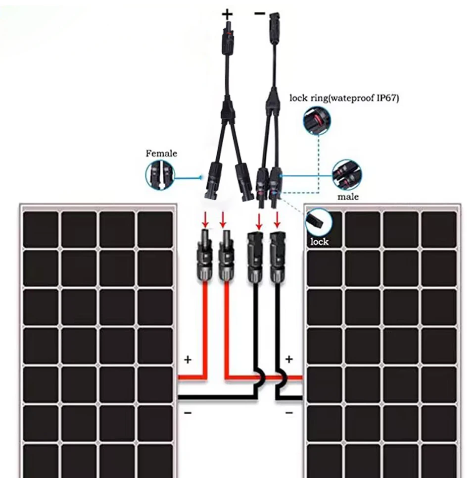 ชุดอุปกรณ์เชื่อมต่อแผงโซลาร์เซลล์ สายอะแดปเตอร์แบบ Y สำหรับเชื่อมต่อแผงโซลาร์เซลล์แบบขนาน พร้อมปลั๊กและเครื่องมือ