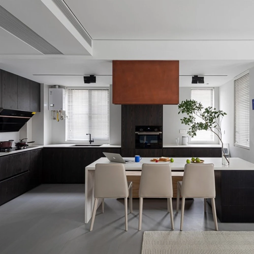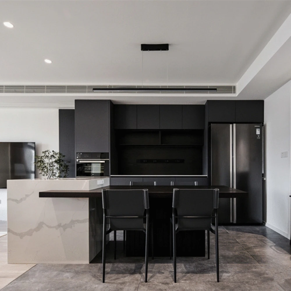 ตู้ครัวเคลือบสีขาวสวยงามทันสมัยแบบโมดูลาร์แบบกําหนดเองครบชุดพร้อมเกาะหินอ่อน