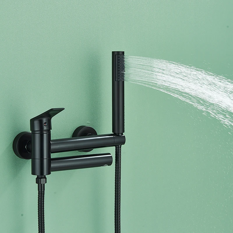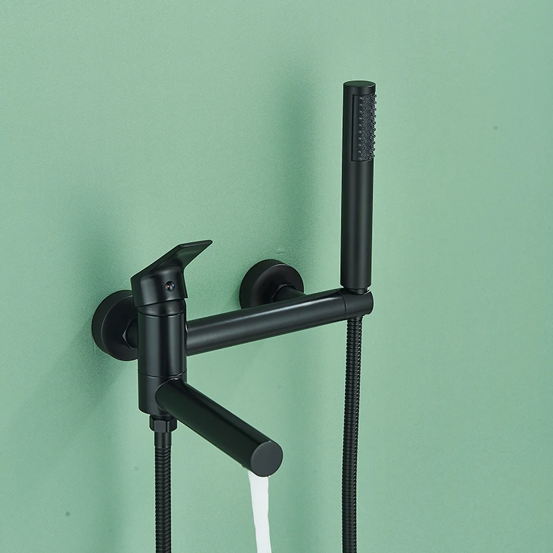 ก๊อกน้ําอ่างอาบน้ําทองเหลือง 2 ฟังก์ชั่น Outlet ติดผนังอาบน้ําก๊อกน้ํา TAP สีดําสําเร็จรูป