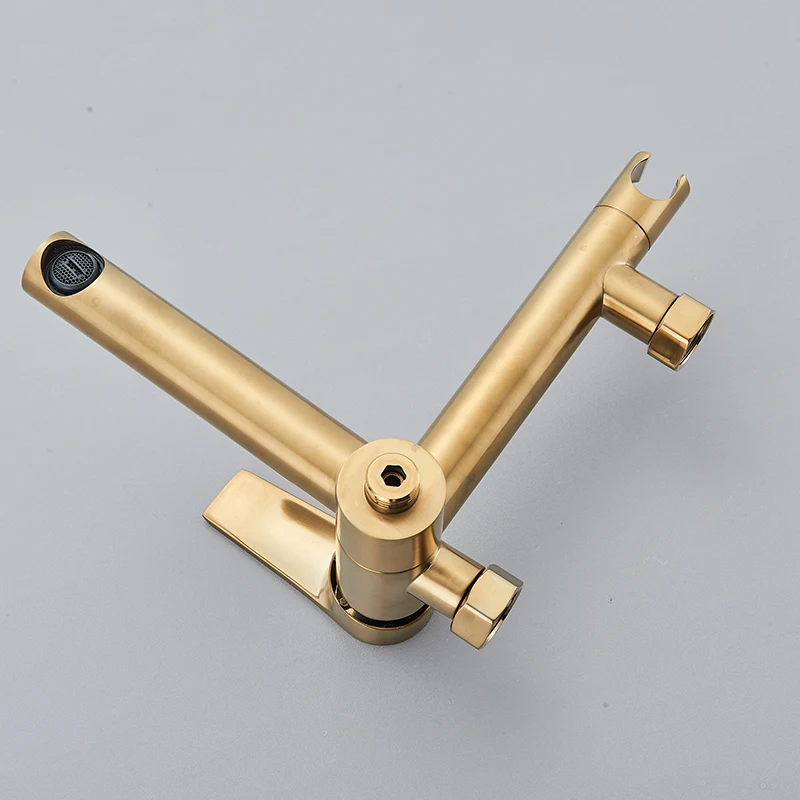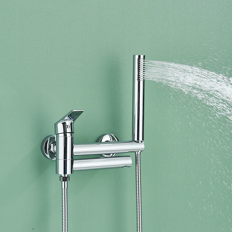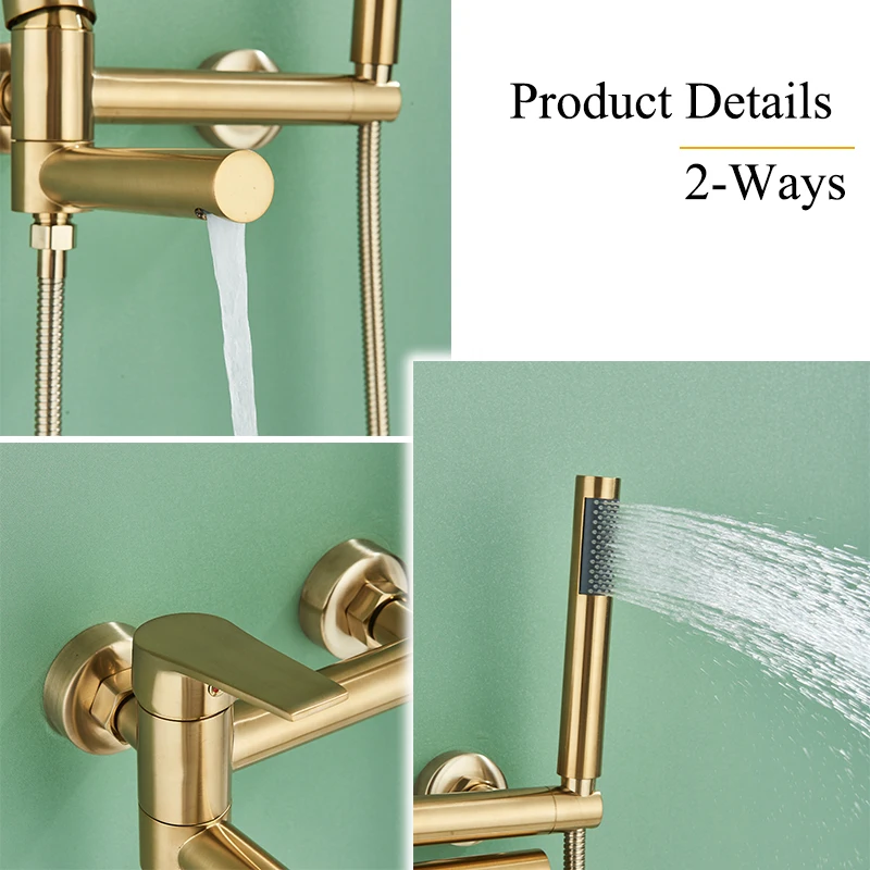 ก๊อกอ่างอาบน้ำทองเหลืองติดผนังห้องน้ำฝักบัวผสมก๊อกเดี่ยวผสมน้ำตกชุดฝักบัวเต็มรูปแบบสำหรับห้องน้ำ