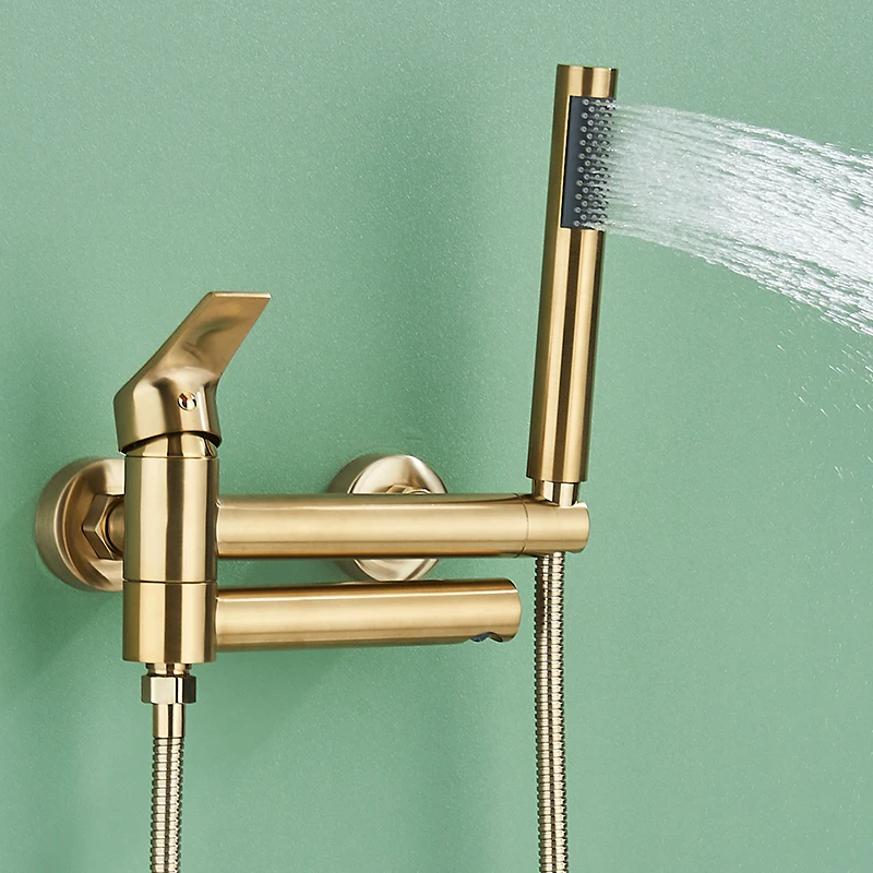 ก๊อกอ่างอาบน้ำทองเหลืองติดผนังห้องน้ำฝักบัวผสมก๊อกเดี่ยวผสมน้ำตกชุดฝักบัวเต็มรูปแบบสำหรับห้องน้ำ