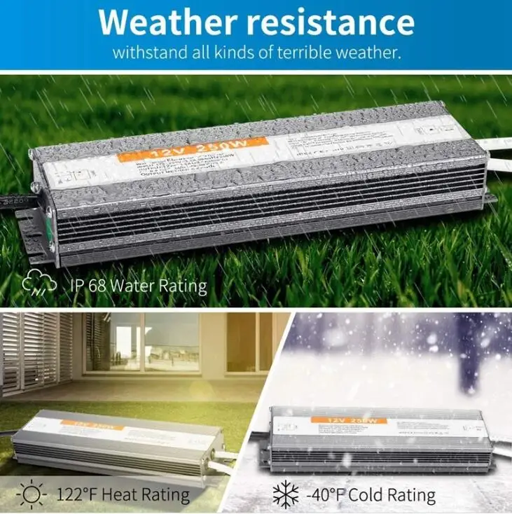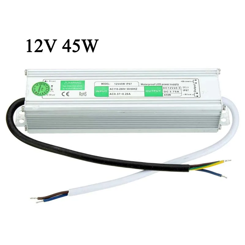 กันน้ําหม้อแปลงไฟฟ้า AC 110V ~ 220V ถึง DC 12V 24V 10W 20W 30W 50W 100W 150W 200W กลางแจ้ง IP67 ~ IP68 อะแดปเตอร์