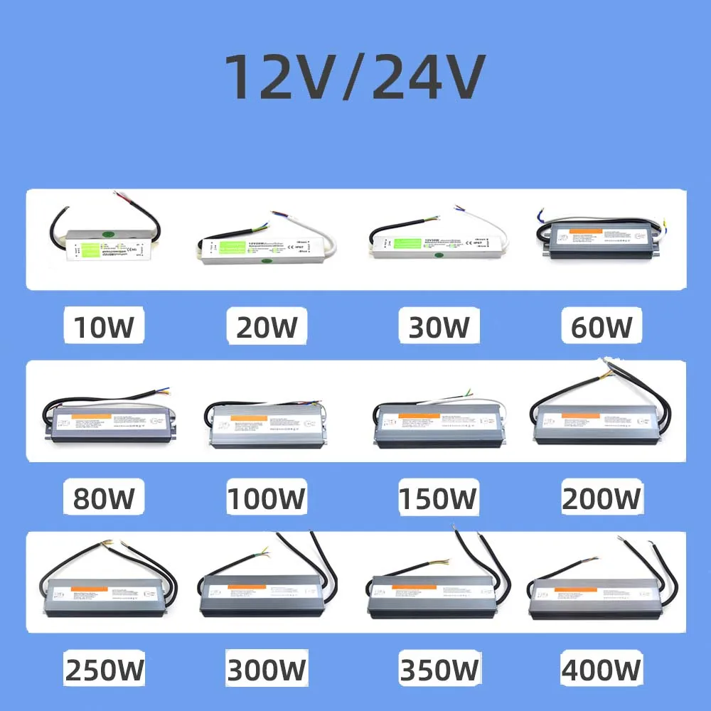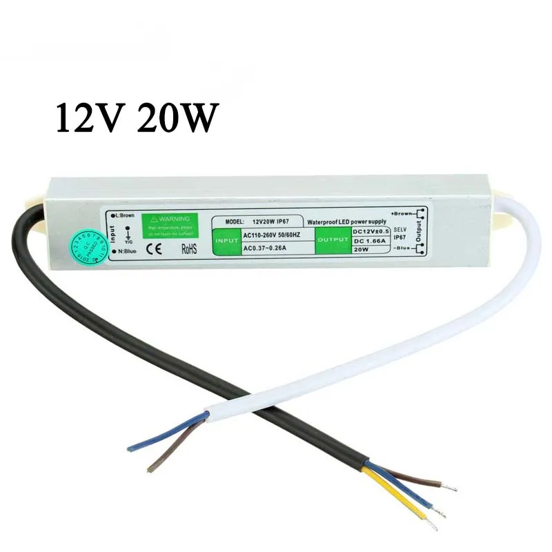 กันน้ําหม้อแปลงไฟ AC 110V ~ 220V ถึง DC 12V 24V แหล่งจ่ายไฟ 10W 20W 30W 50W 100W 150W 200W กลางแจ้ง IP67 ~ IP68 อะแดปเตอร์