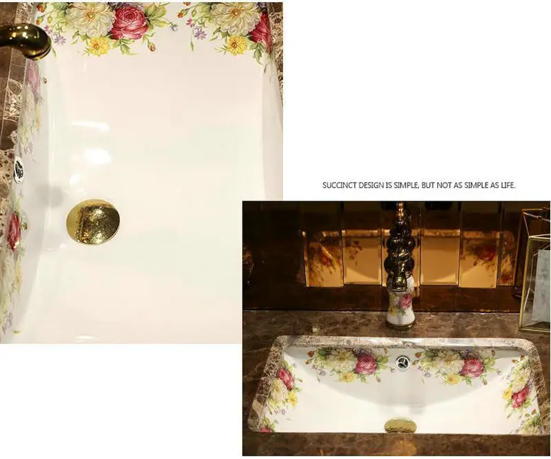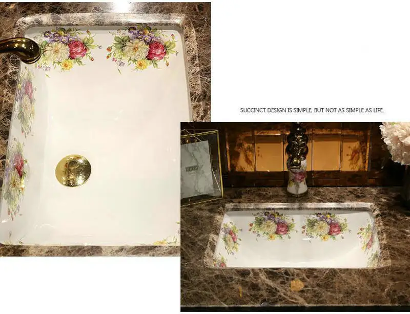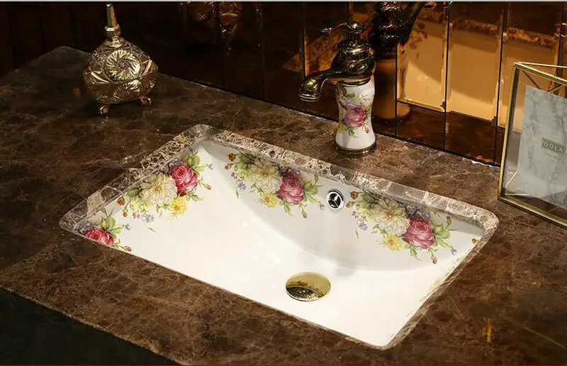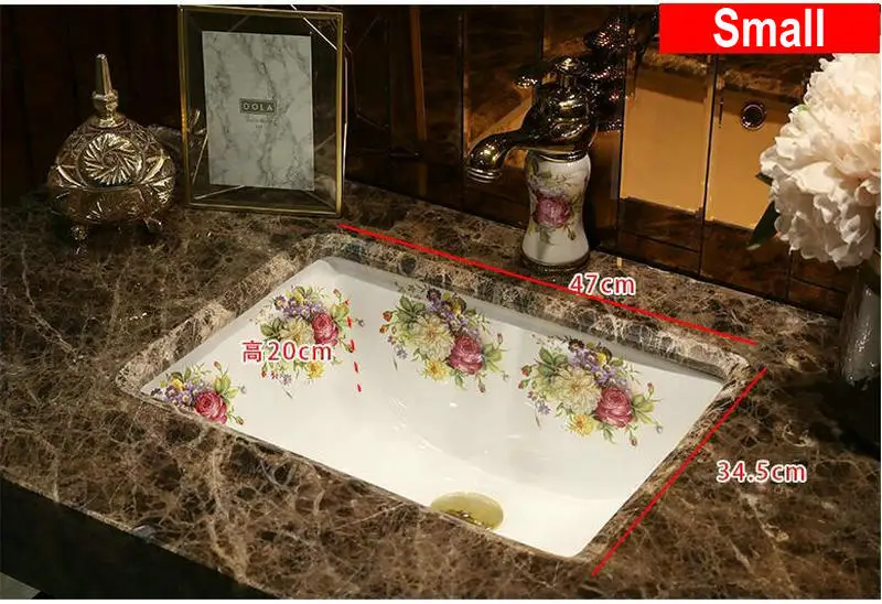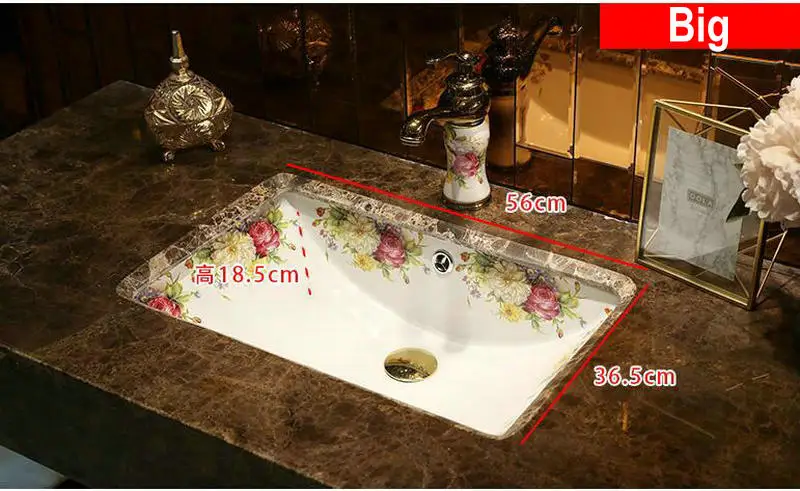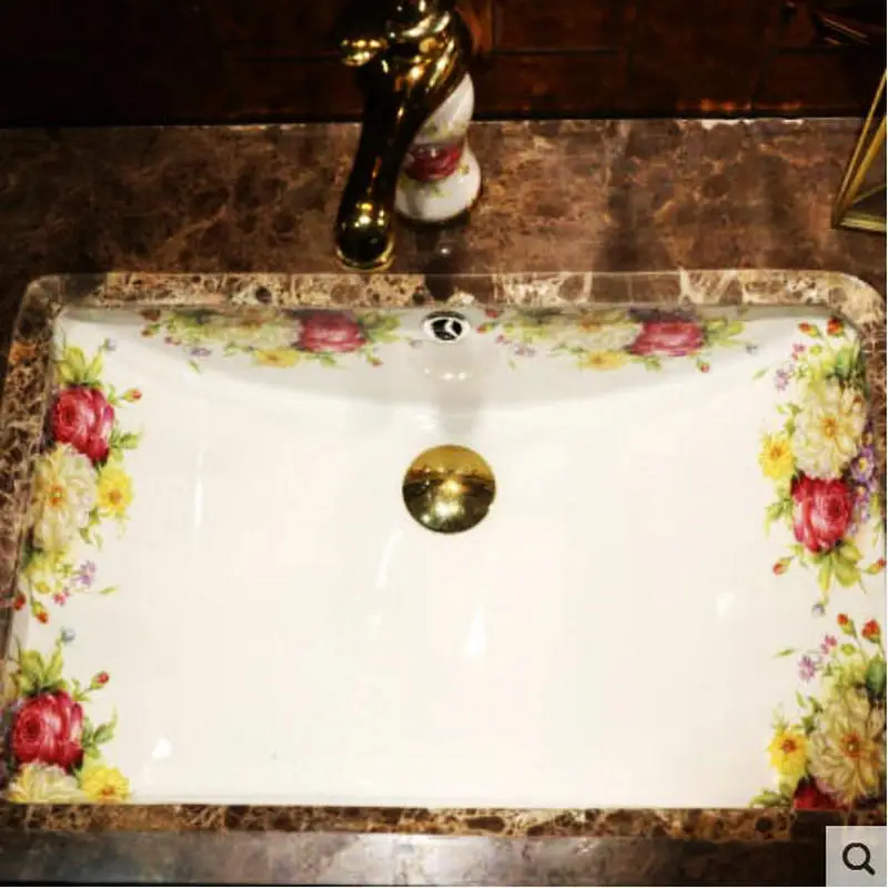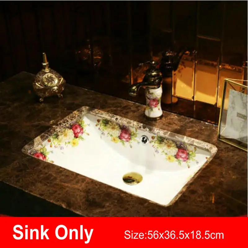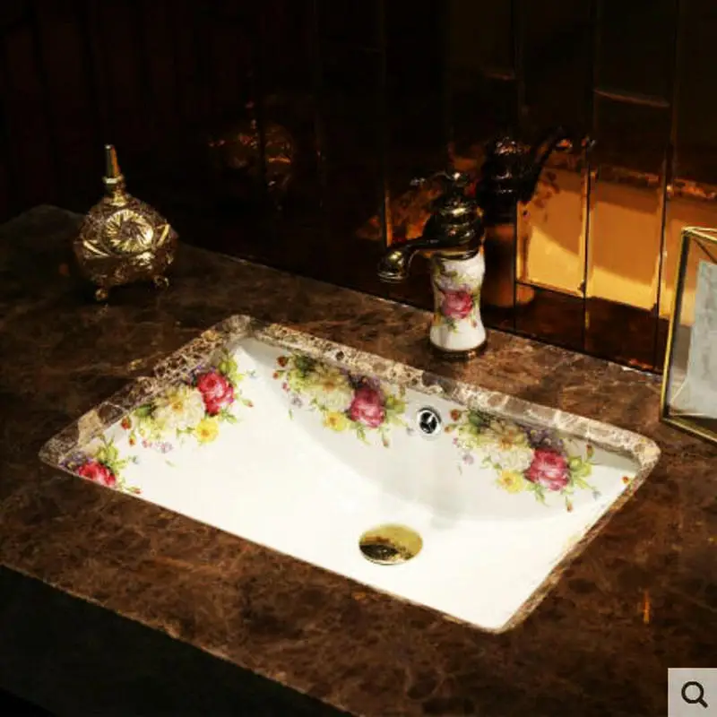 MAEBOW โรแมนติก Rose สี่เหลี่ยมผืนผ้าภายใต้อ่างล้างจานอ่างล้างหน้าเซรามิครูปไข่อ่างล้างหน้าห้องน้ํา