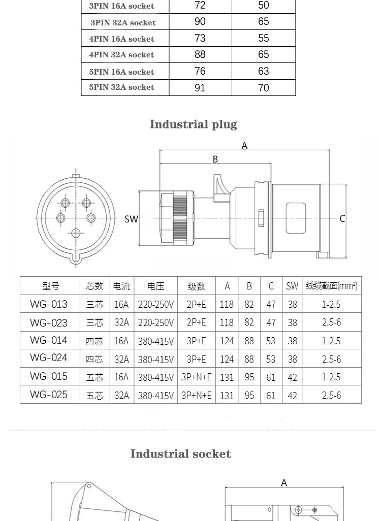 ปลั๊กแอนด์ซ็อกเก็ตอุตสาหกรรมชายหญิง IP44ปลั๊กแอนด์ซ็อกเก็ตกันน้ำขั้วต่อ3PIN 4PIN 5PIN 16A/32A ปลั๊กติดผนังเชื่อมต่อไฟฟ้า