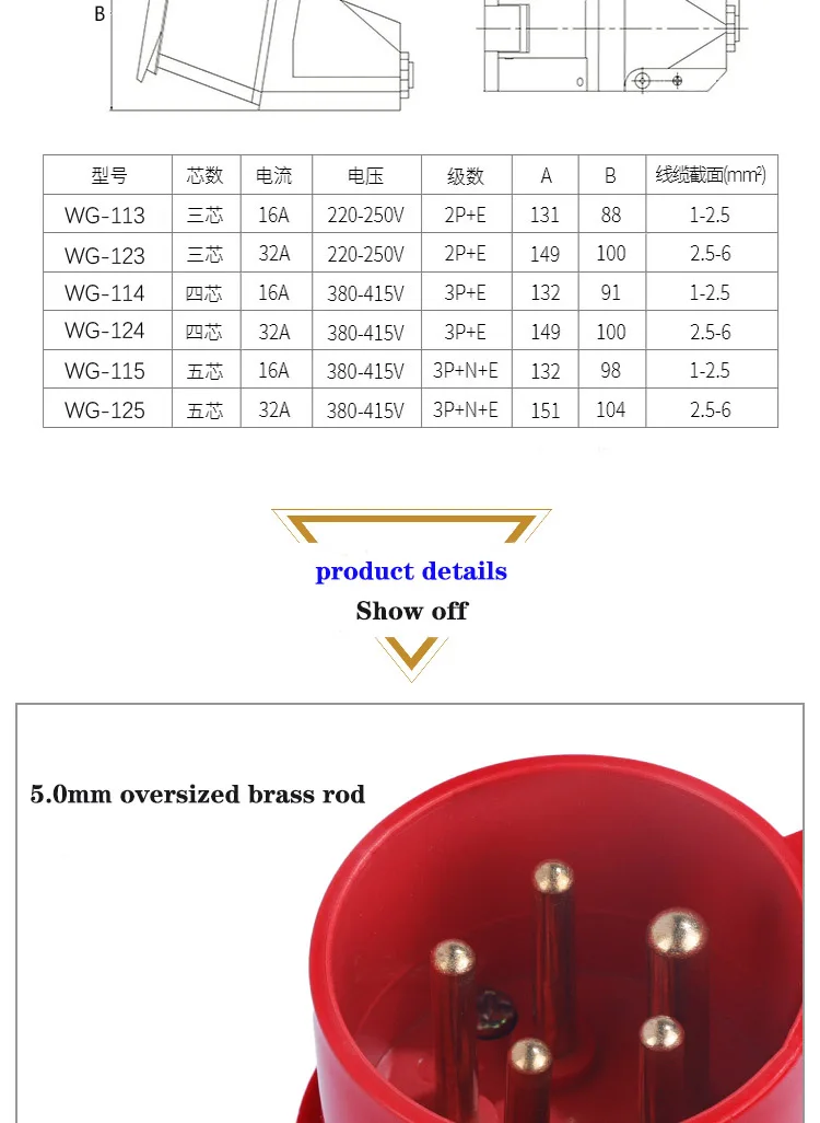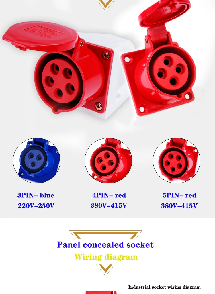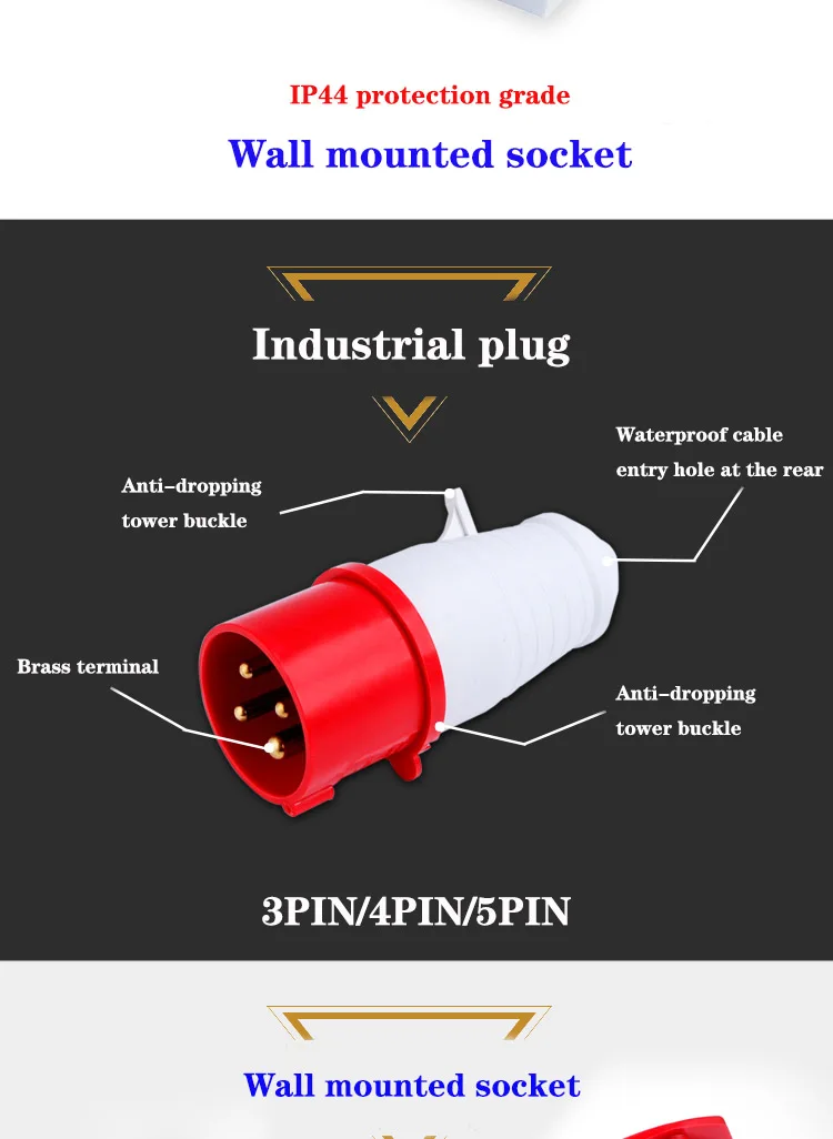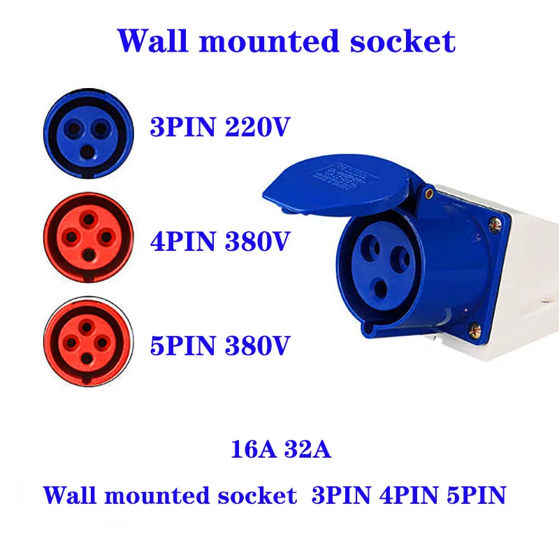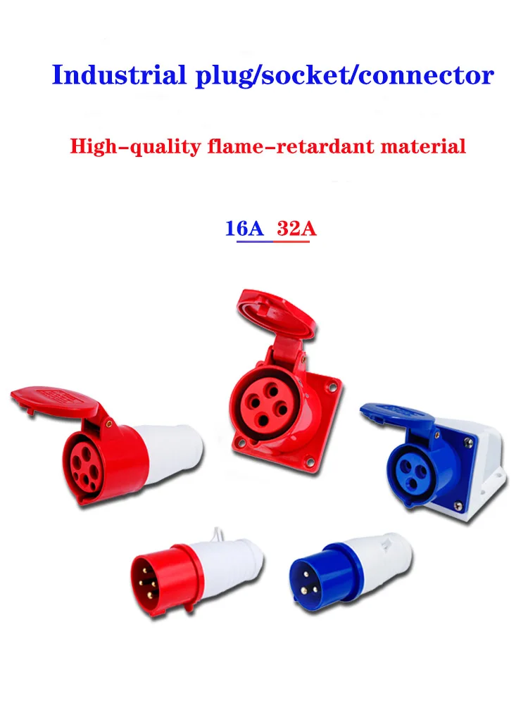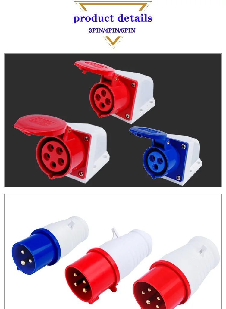 ปลั๊กแอนด์ซ็อกเก็ตอุตสาหกรรมชายหญิง IP44ปลั๊กแอนด์ซ็อกเก็ตกันน้ำขั้วต่อ3PIN 4PIN 5PIN 16A/32A ปลั๊กติดผนังเชื่อมต่อไฟฟ้า