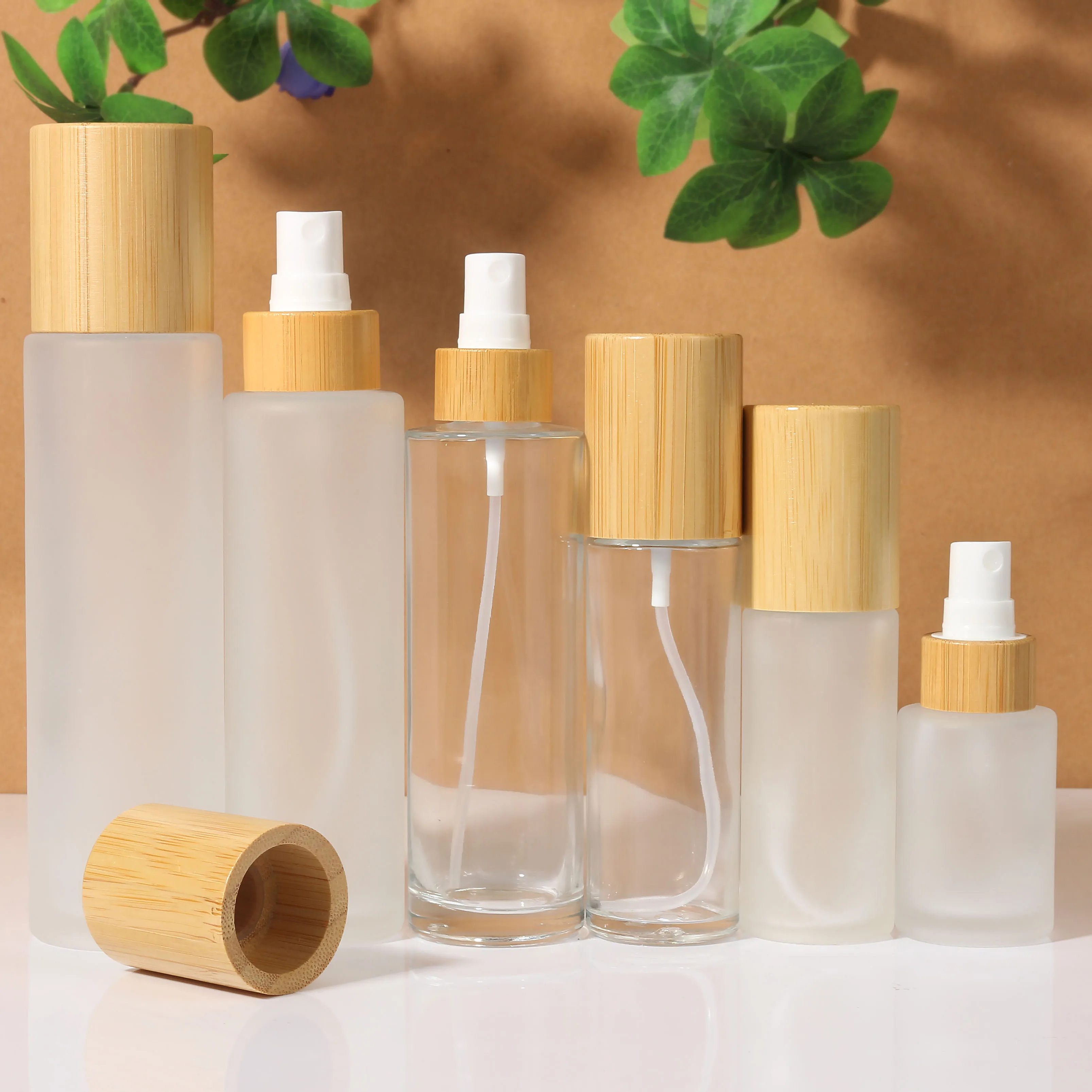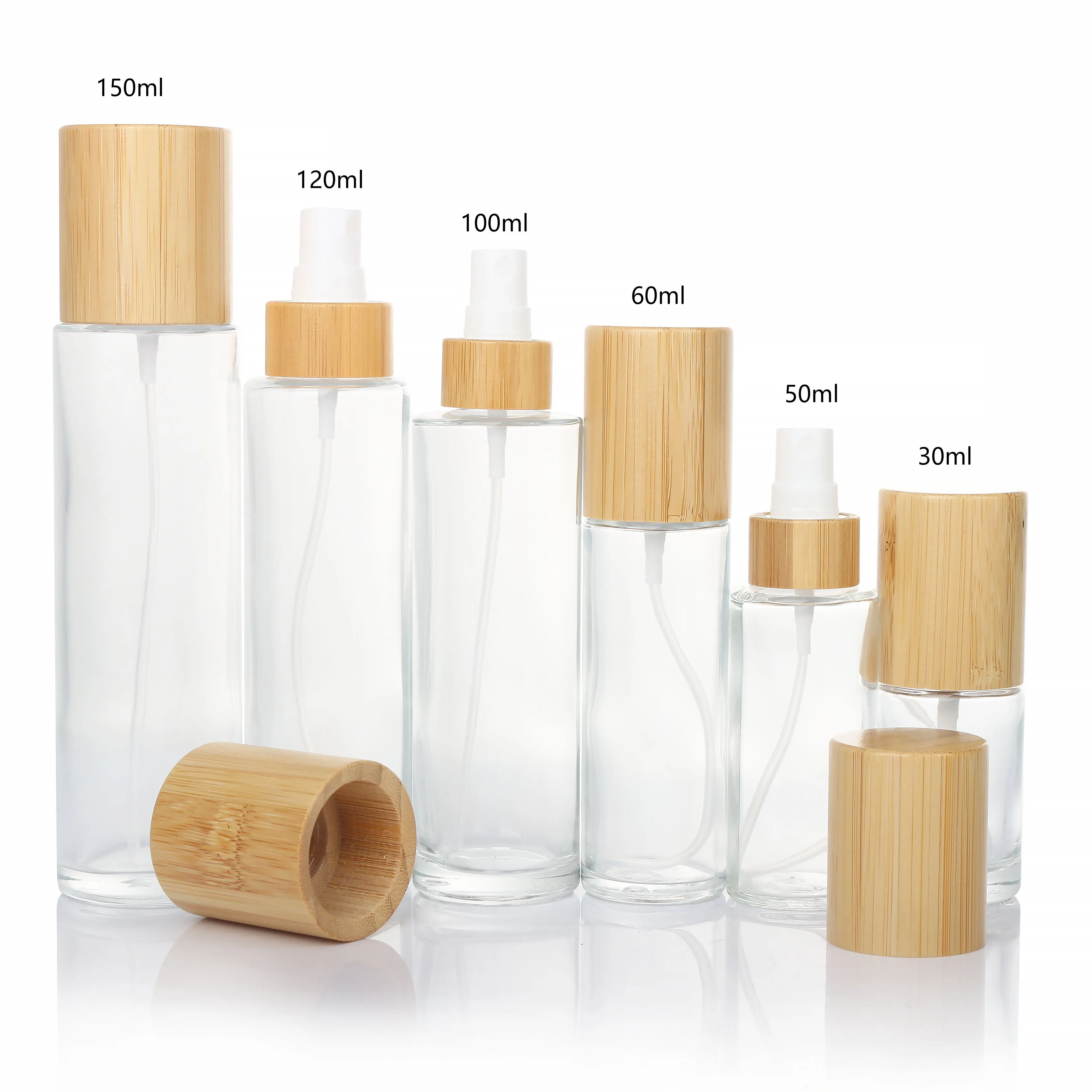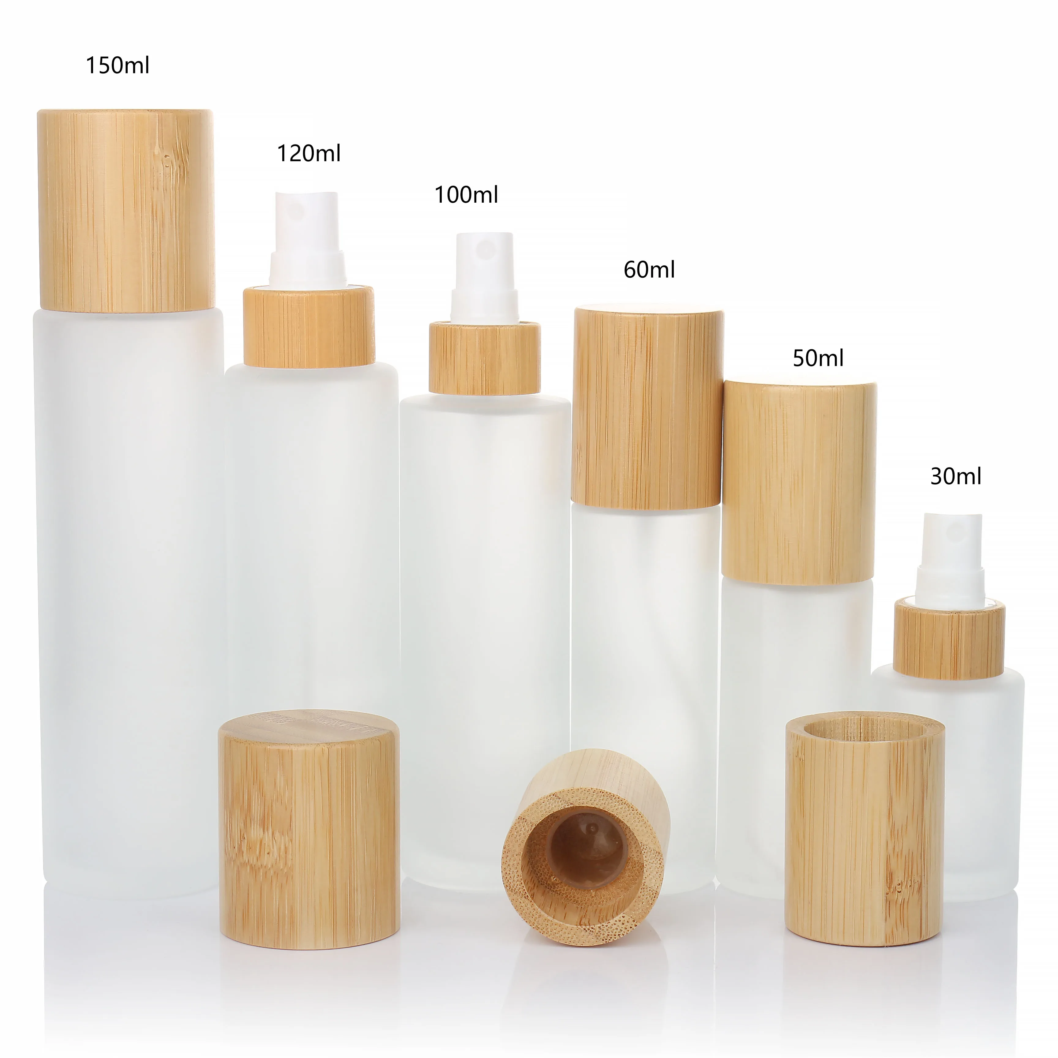 เปล่า 150ml120ml100ML ไม้ไผ่ฝาปิด Frosted แก้วสเปรย์ขวด Fine Mist Despenser สําหรับน้ําหอมอุปกรณ์อาบน้ําคอนเทนเนอร์