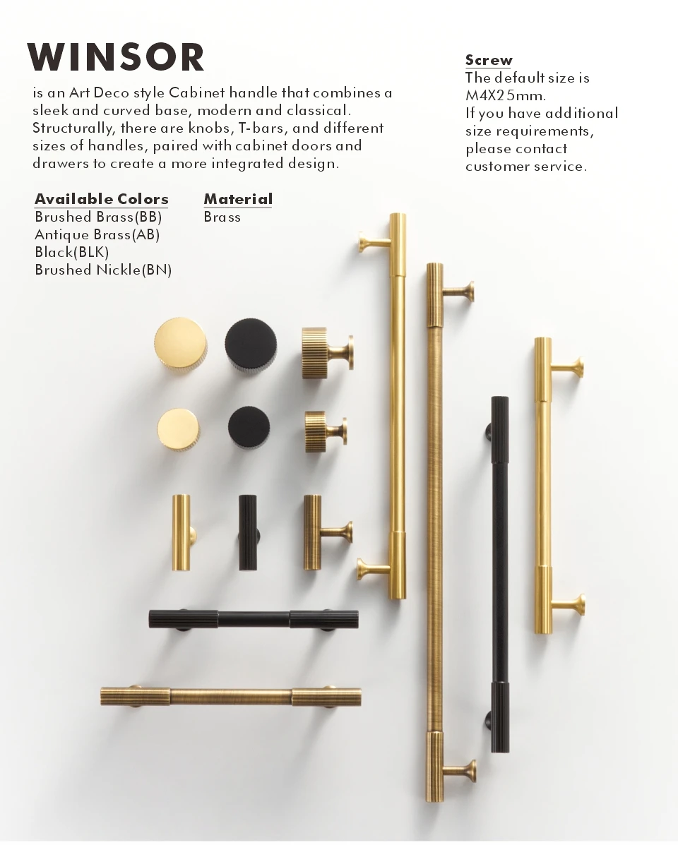 WINSO is an Art Deco style Cabinet handle that combines a sleek and curved base, modern and classical.Structurally, there are knobs, T-bars, and different sizes of handles, paired with cabinet doors and drawers to create a more integrated design.