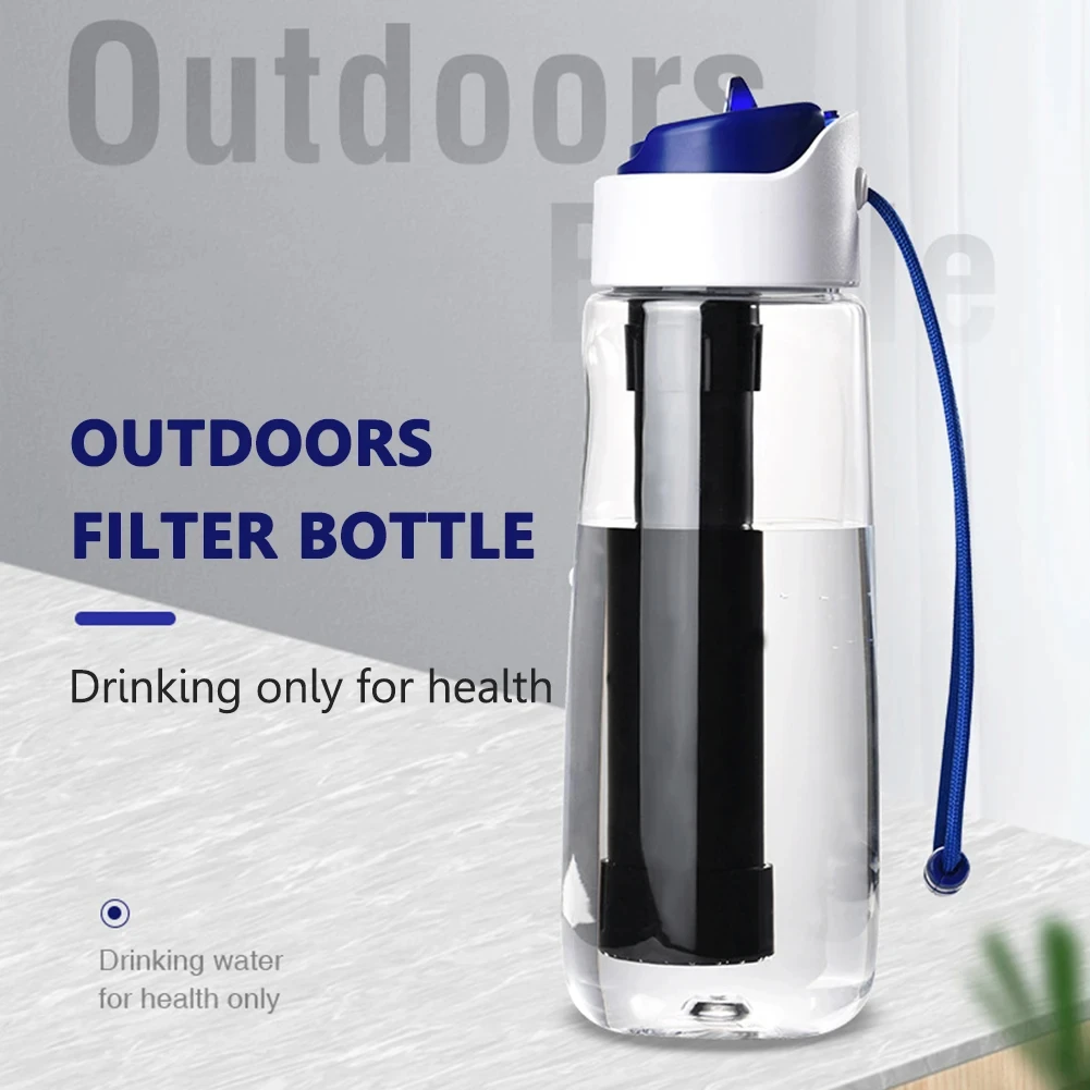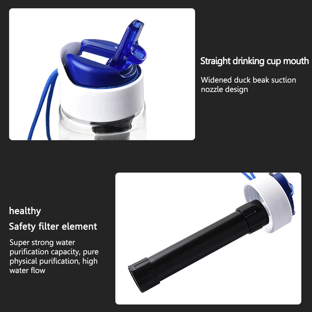 ขนาดใหญ่ 750 มลขวดน้ำแบบล็อคได้ BPA ฟรีฟางเครื่องกรองแบบพกพากลางแจ้งตั้งแคมป์กรองระบบถ้วยดื่มสำหรับเดินทาง