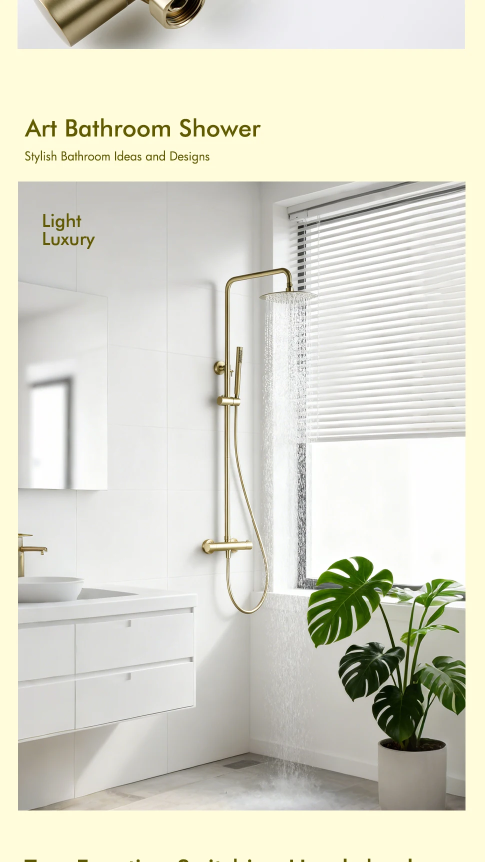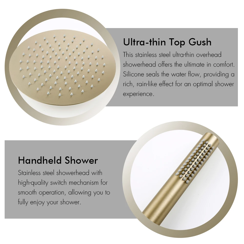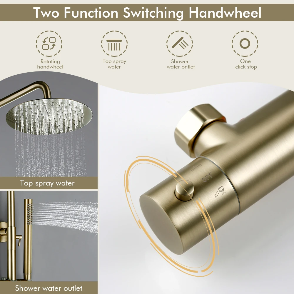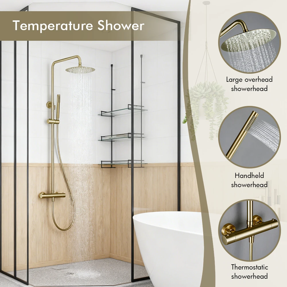 ชุดก๊อกน้ำฝักบัวแบบเทอร์โมสแตติกสีทองขัดเงา ติดผนัง ทำจากทองเหลือง พร้อมฝักบัวแบบเรนชาวเวอร์