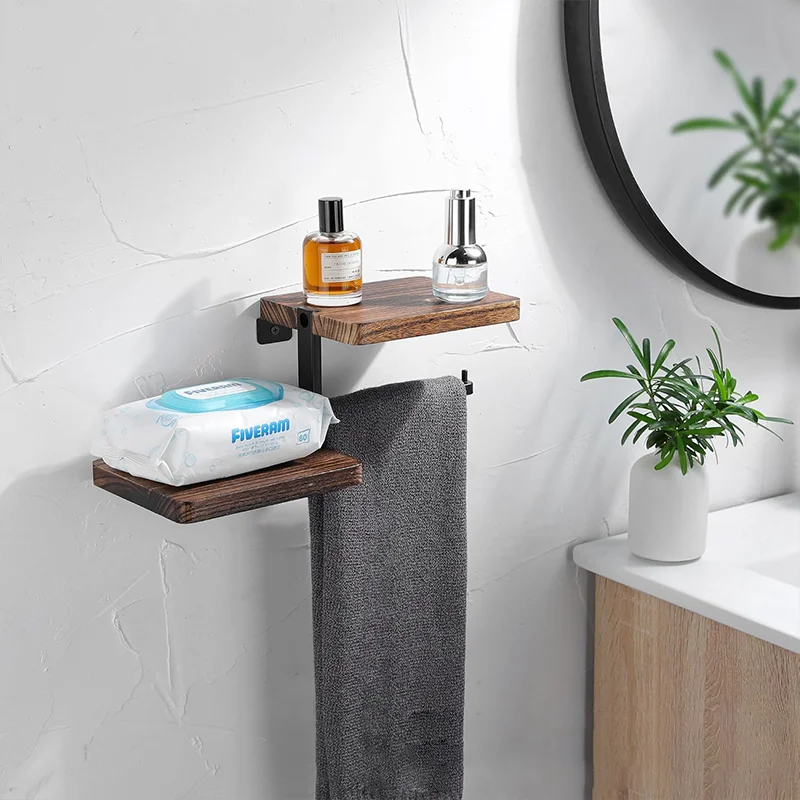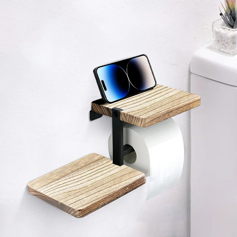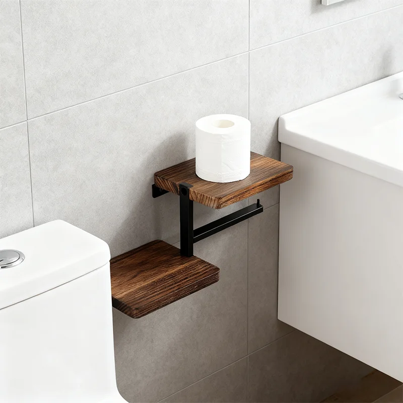 ที่แขวนกระดาษทิชชู่ติดผนังไม้ 1 ชิ้น สีดำ สำหรับห้องน้ำ ห้องครัว